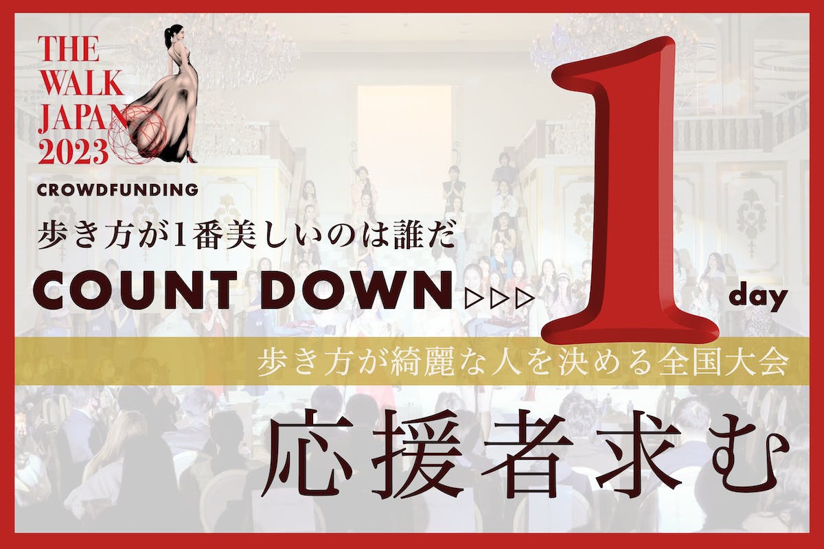 • 現在達成率87%! 総支援額1,046,033円! 支援者様 95名!あと1日となりました。(3月28日(火)23:59まで) THE WALK JAPAN 2023は、日本国内11エリアから地方大会を勝ち抜いた44名のファイナリストが集結し、日本大会グランプリを目指します。各地の実行委員が様々な想いを持ち、準備を進めてまいりました。 【私たち実行委員の想い。】THE  WALK JAPANを応援いただきありがとうございます!3月15日日本大会へ向けてのクラウドファンディング挑戦もクライマックスになりました。「ウォーキングには人生を変える力がある」私達講師はみんな、ウォーキングに出会って人生が好転してきた人の1人です。そして、今回チャレンジしてくださったファイナリストの皆さんもウォーキングに向き合うことで自分自身に、そして人生に変化を感じてくださっています。歩き方はその人そのもの。歩き方を変える。それだけで体がマインドが人生が面白いほど変わっていきます。「日本に美しく歩く文化を作る」これが私たちができる最高の社会貢献です。今回THE WALK JAPANを開催するにあたり、私達講師みんながそんな想いを伝え、大会を形にしてきました。その想いにファイナリスト達は精一杯想いを持って精進してくれています。そんな最高のファイナリスト達のために、日本に美しく歩く文化を作るために、どうぞ力をお貸しください!貴方のご支援がTHE WALK JAPANをつくる力強い一歩になります。最後まで応援よろしくお願いいたします!感謝を込めて。実行委員代表 済木南希 日本大会観覧チケットもご用意しています。「THE WALK JAPAN 2023」 美しく歩くことを日本の文化に!https://camp-fire.jp/projects/view/651650?utm_campaign=cp_po_share_mypage_projects_show もっと見る