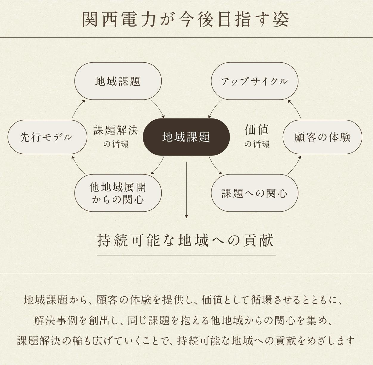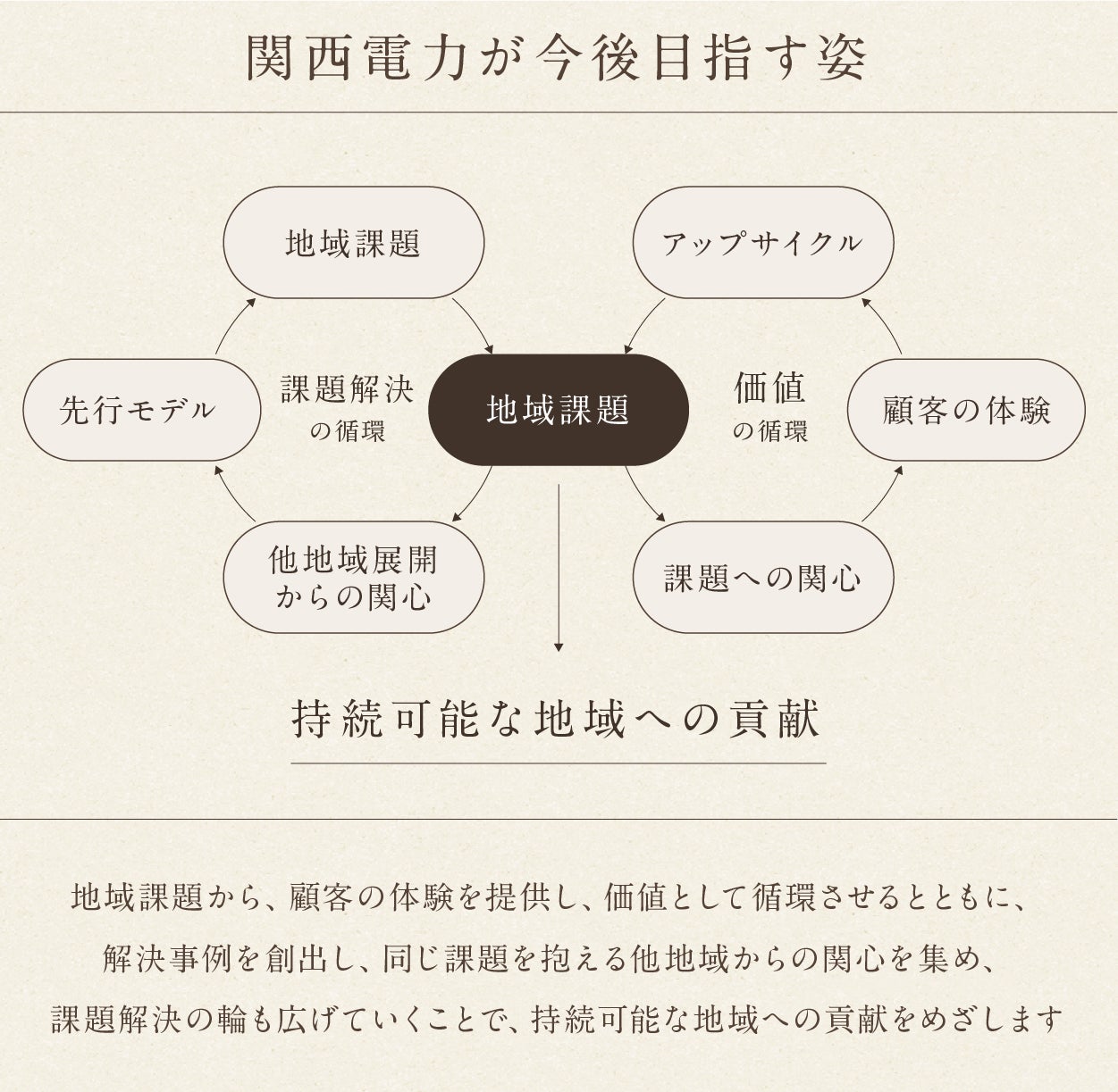 地域課題を顧客の体験に変換させ、関心を持ってもらうとともに、解決事例を創出することで、同じ課題を抱える他地域からの関心を集め、事例を広げていくことで、持続可能な地域への貢献をめざします。