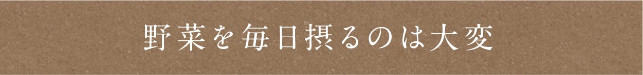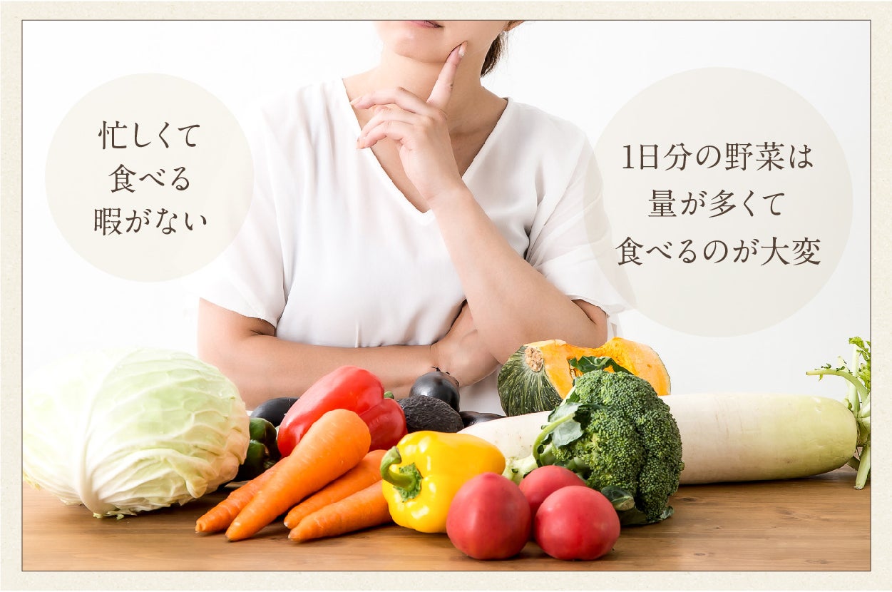 こんなに大事だとわかっていても、野菜不足で体の調子が悪くなって、なんだか残念な気分になってしまいます。私たちの不調の中には野菜不足に由来するものもあるかもしれません。