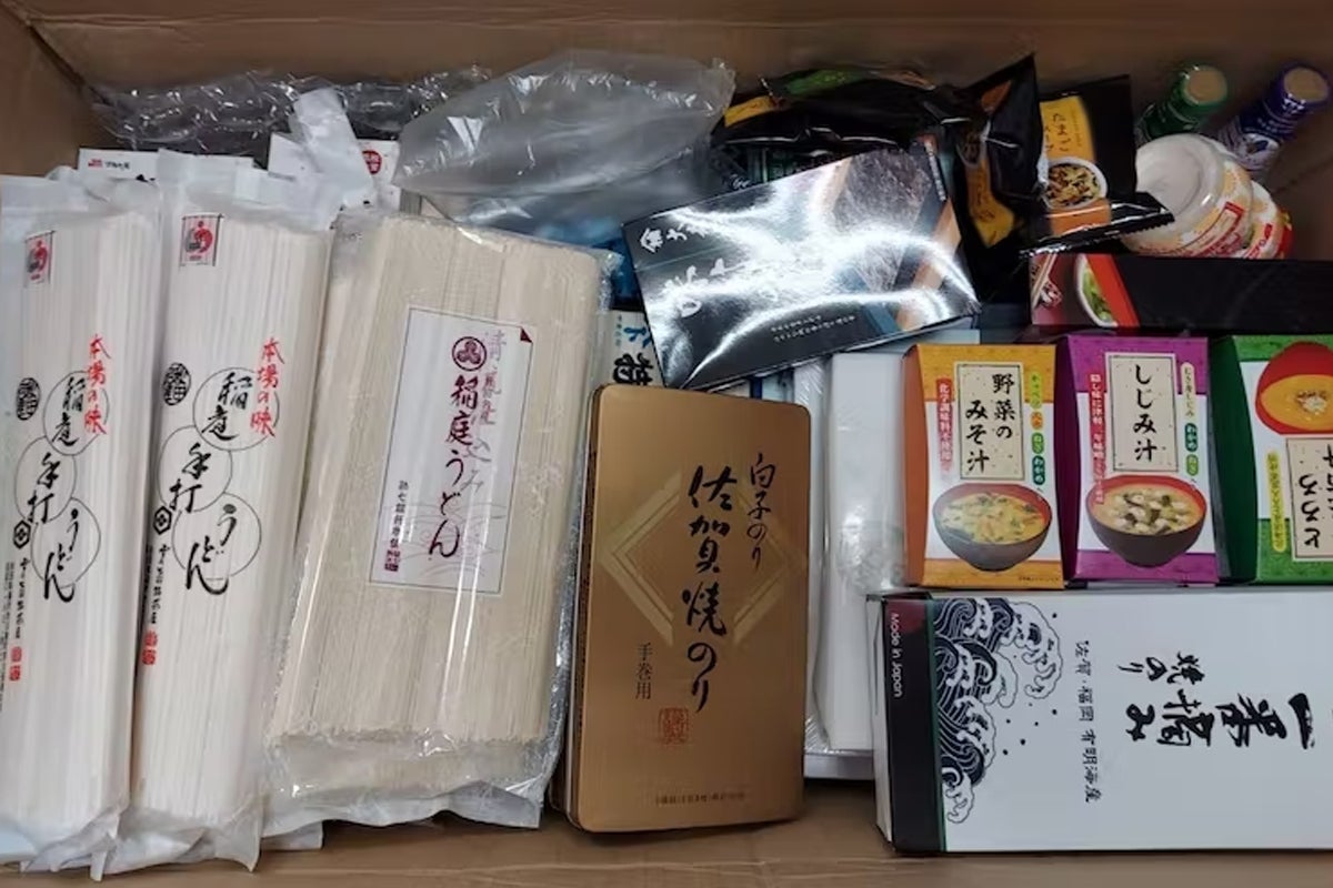 宅配便の中は、その時々の各方面からの食糧支援の内容で変わります。秋田の名産品が入ったり、季節によっても変わります。※写真はあくまでも参考です。
