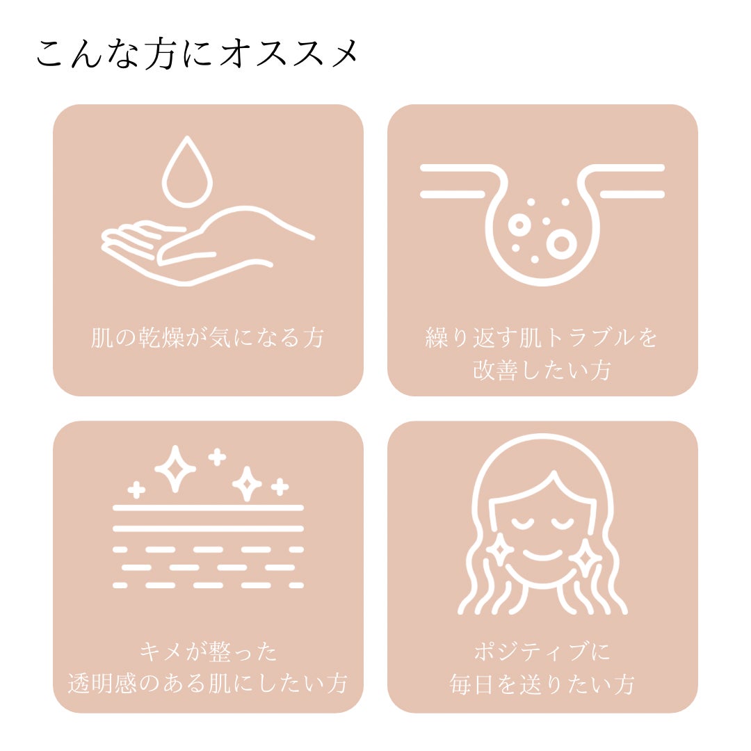 年齢を重ねたあなたの肌悩みに潤いでアプローチ!キメの整った健やかな肌へ導きます。