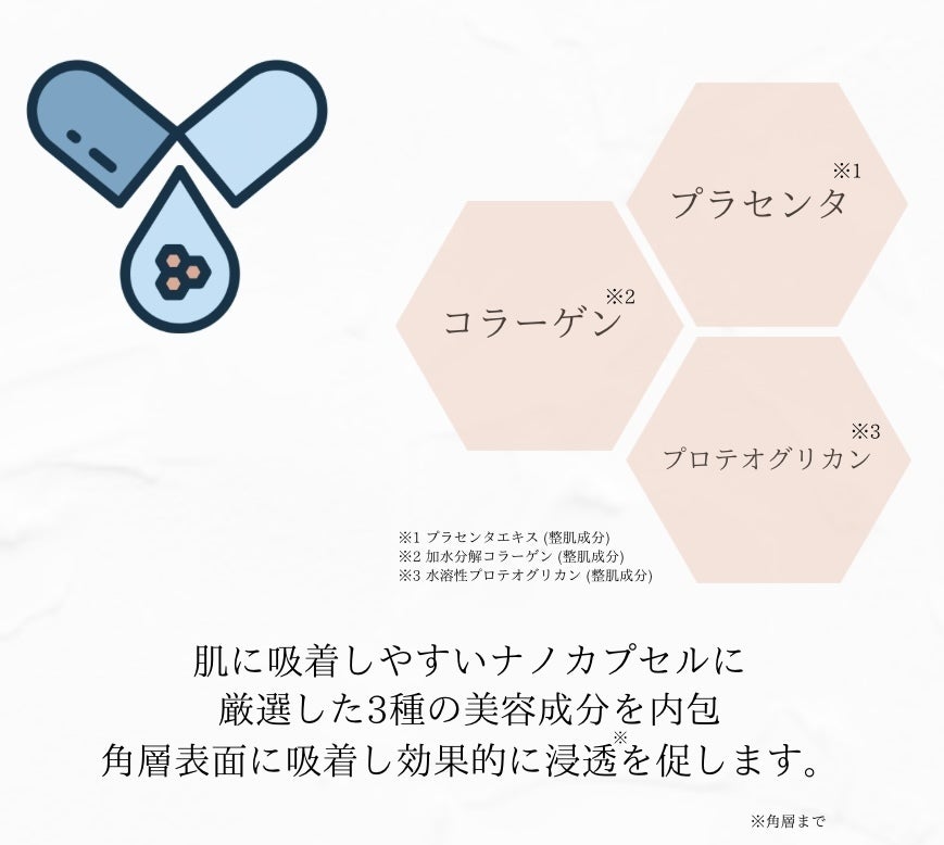 分子が小さく、角質層まで浸透しはりツヤのある肌へ導きます。