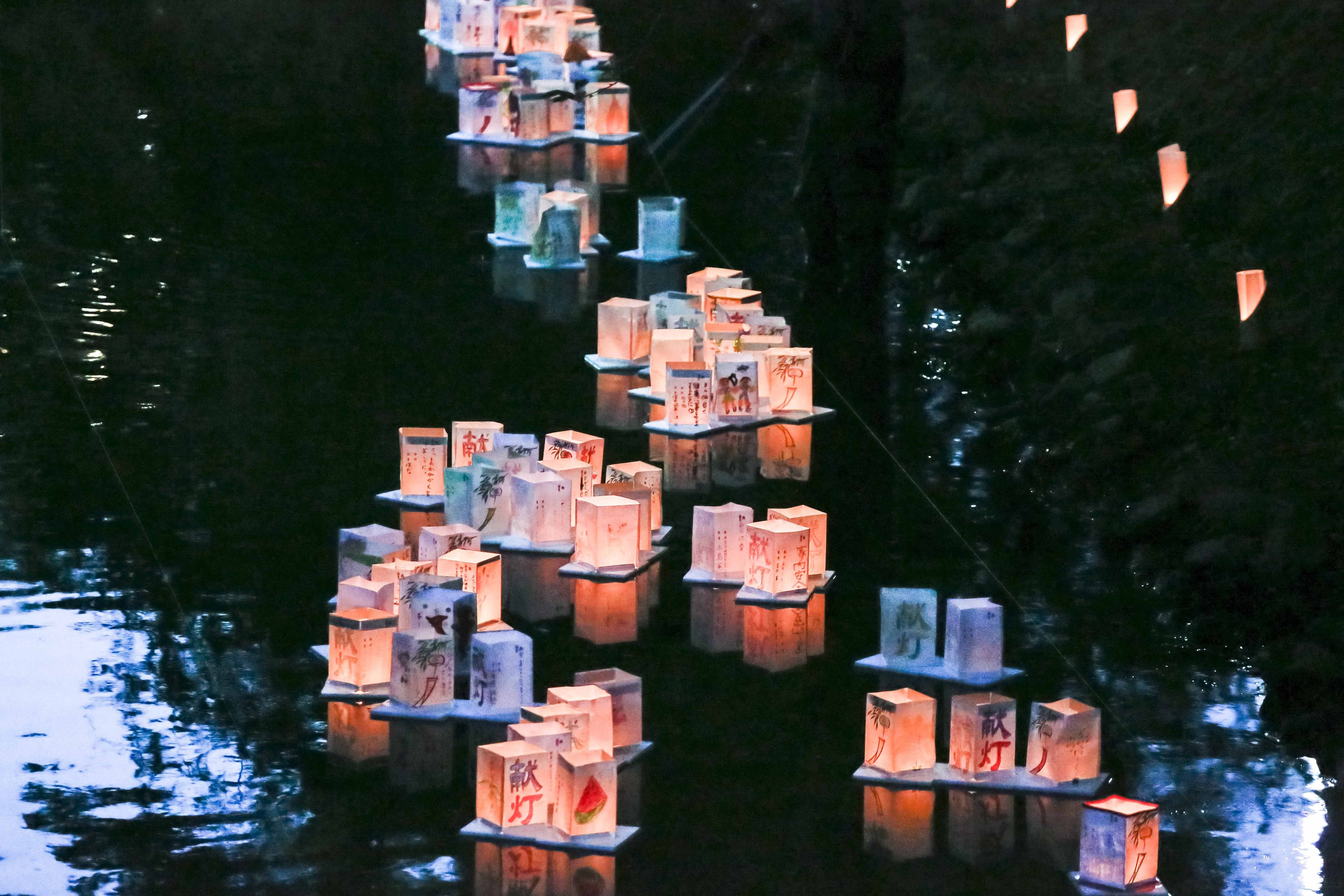 ・灯ろうは思い思いの絵や願いを込めて坂川に流せます(流した灯ろうは後日全て回収いたします)。