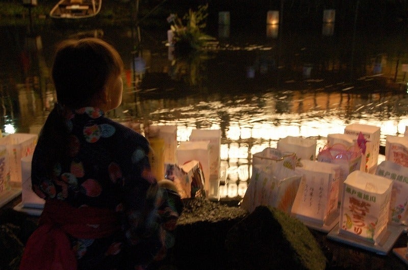 行事では坂川の流れに沿って多数の行灯や提灯を並べます。