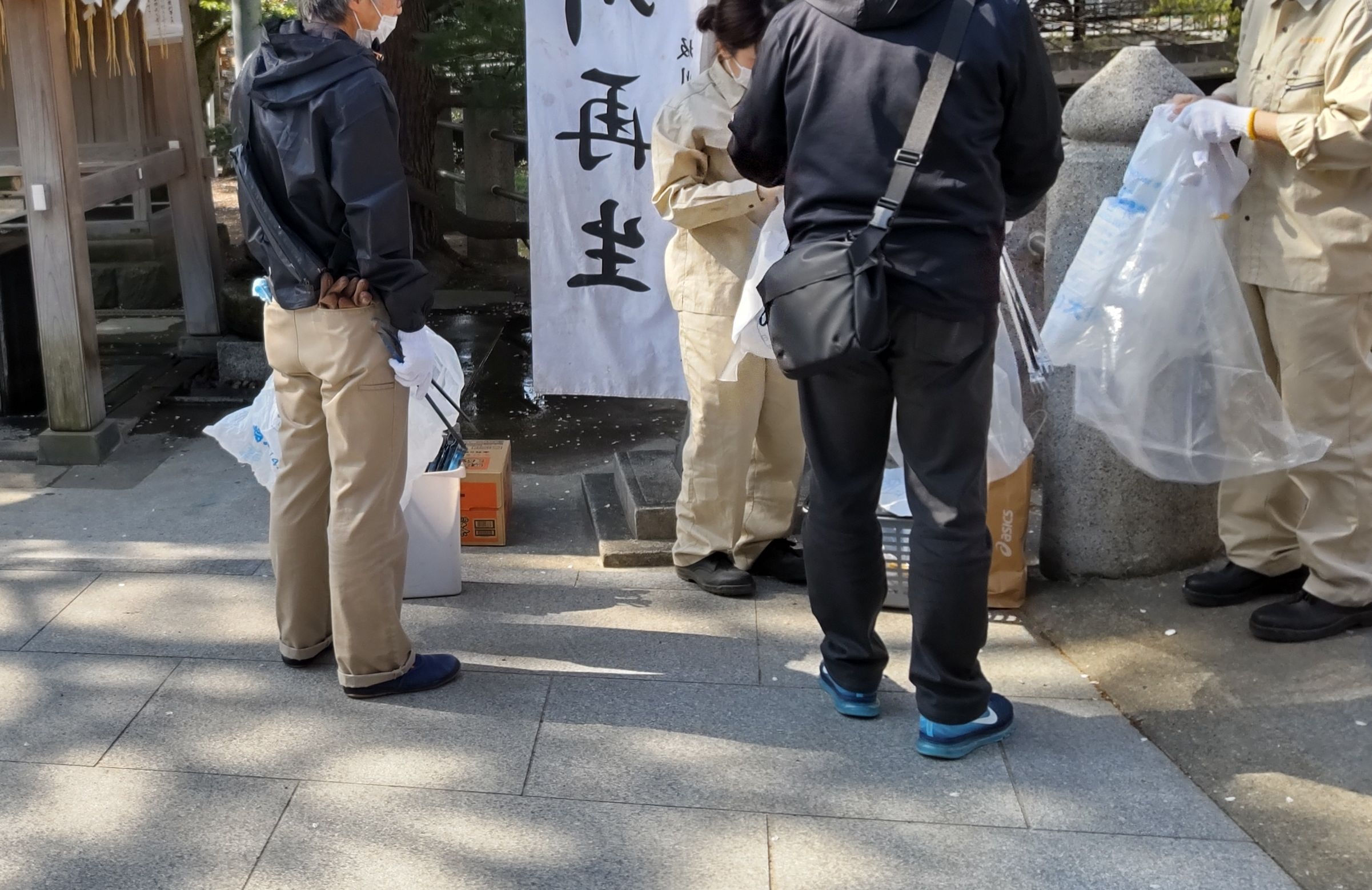 4/1(土) 9:00~10:00 松戸神社参道に集り坂川周辺の清掃を行いました。