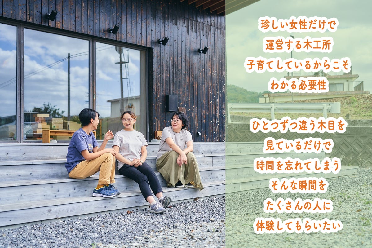 一場木工所(本社:広島県三次市)は、女性だけで運営する全国でも珍しい木工所 ウッドデザイン賞8年連続受賞するなど、多数のアワードに輝いたデザイン性の高い木育おもちゃを製造販売しています。技術士(森林部門/林産)として、親子向けの木育ワークショップの実施や企業・行政向けアドバイザー、内装木質化等効果実証事業などの検証など、多角的な木育で木の魅力や可能性を伝えています。