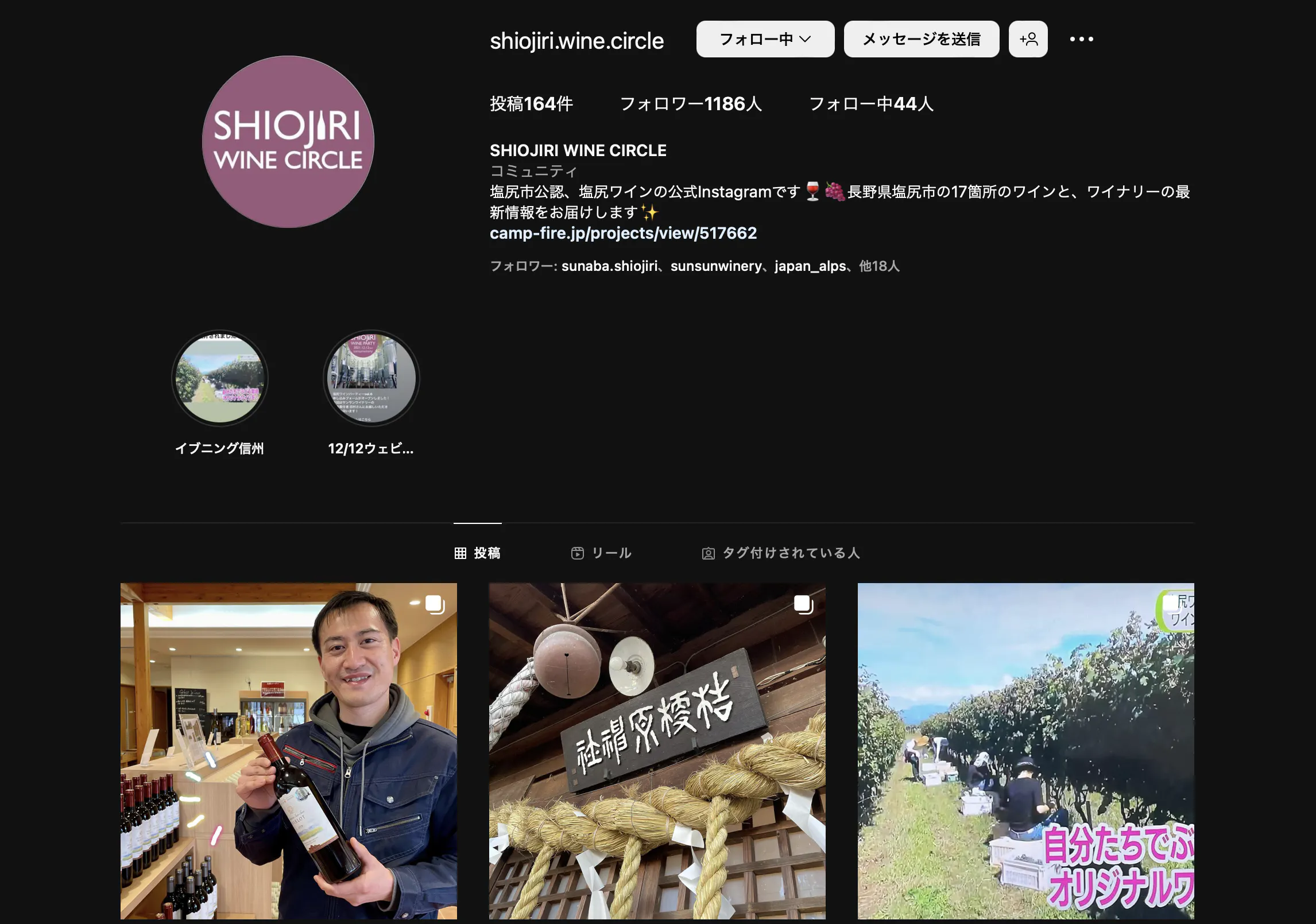 インスタグラムを活用した塩尻ワインのまつわる情報発信を開始。
