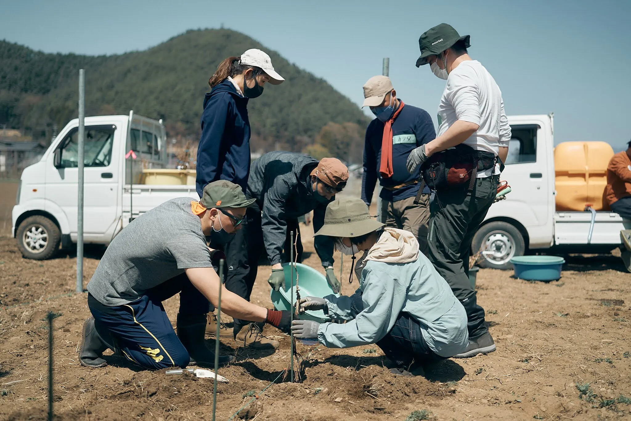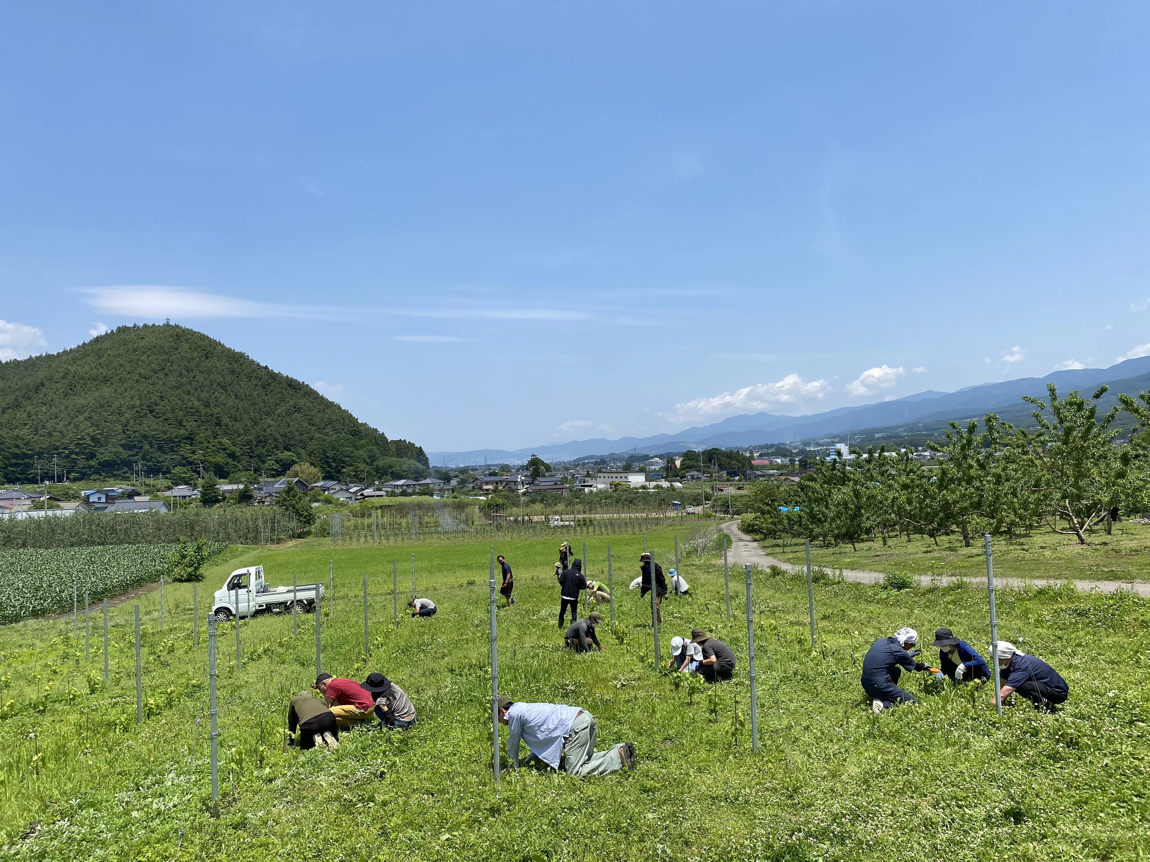 クラウドファンディングによって支援いただいた県外からのメンバー約50名と共に、ヴィーンヤードの開設に成功。現在メルローを主体とした栽培を行っている。
