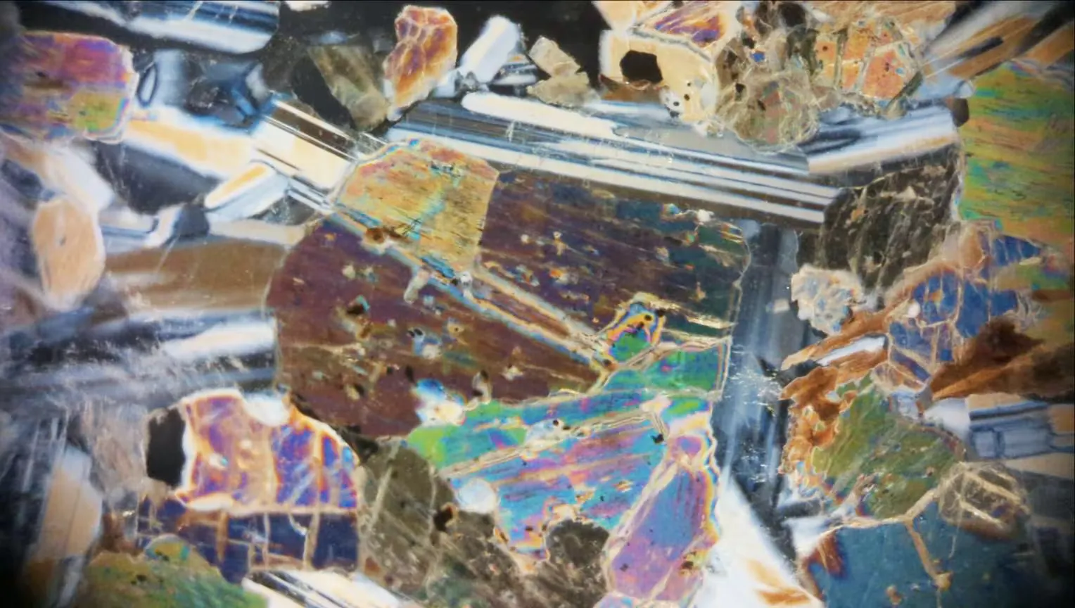 (普通の顕微鏡では観察できない、岩石薄片の結晶を緻密観察。岩石の種類や鉱物の種類を判定する事ができます。)