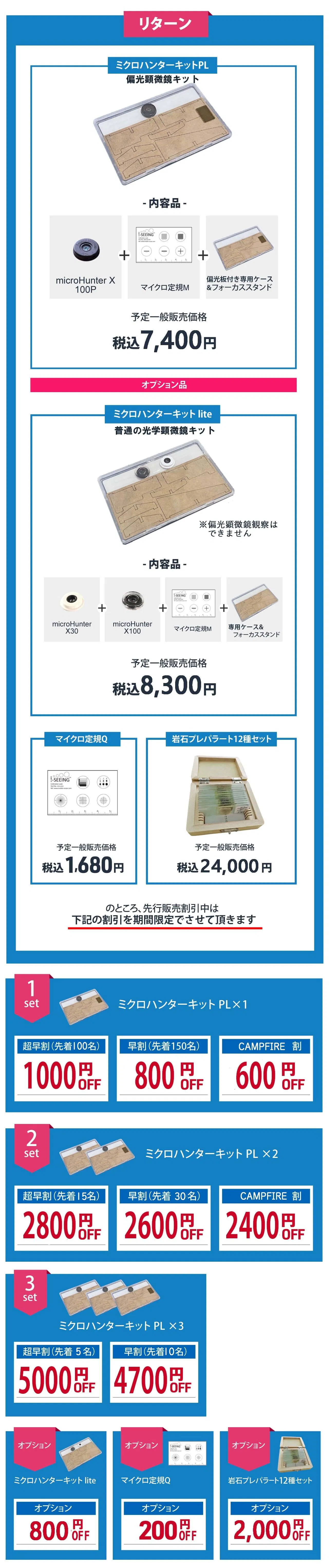 2024/10/24 18:30こんにちは!ミクロハンタープロジェクトチームです。タイトルの通り、ミクロハンターに新レンズ「MH-X250」が加わり、この度machi-yaで先行販売を開始しました。▼先行販売ページhttps://camp-fire.jp/projects/799999/view?utm_campaign=cp_po_share_c_msg_mypage_projects_show最大倍率1200倍率での観察が可能となるレンズです。皆様のミクロの世界がさらに大きく広がることを期待しています。12月10日までの先行割引ですので、この機会にぜひお見逃しなく!▼先行販売ページhttps://camp-fire.jp/projects/799999/view?utm_campaign=cp_po_share_c_msg_mypage_projects_show もっと見る【お知らせ】すべてのリターンの発送が完了しました