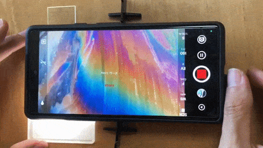 レンズの収納ケースも照明ボックスとして役立ちます。スマホライトや周囲光は、ケースの底面に反射しサンプルを裏側から照らします(透過照明)。