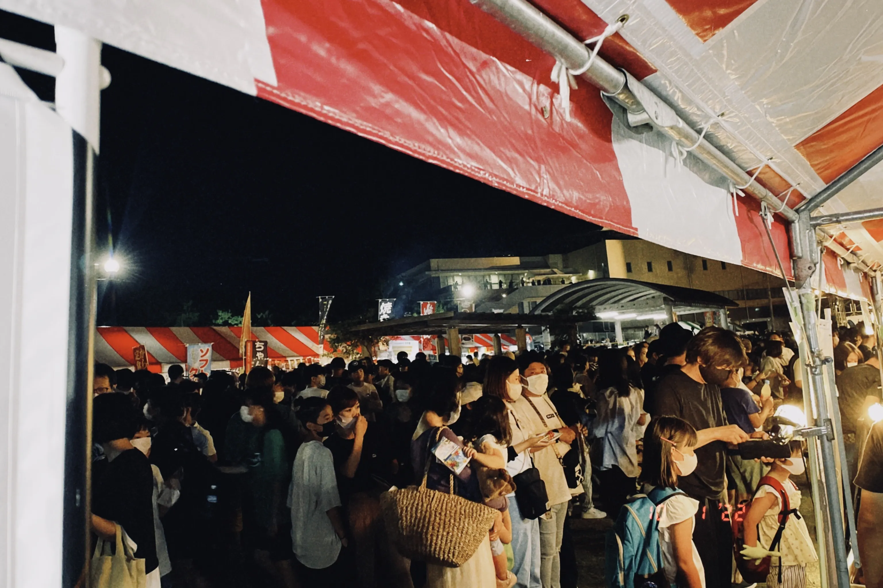 周りは唐揚げや、焼きそば、祭りの定番屋台が並ぶ中