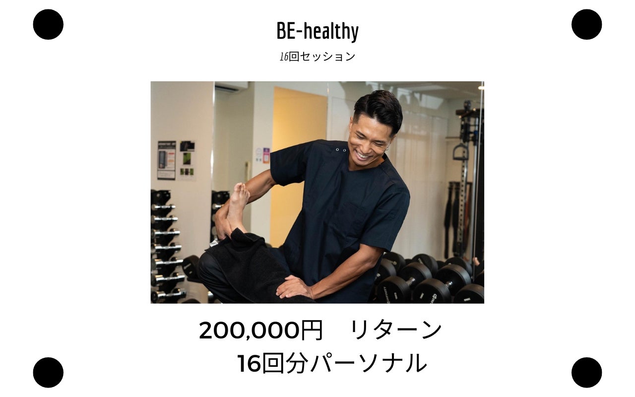 BE-healthyではトレーニング×整体のメソッドを用いて現代人の運動不足による肩こりや腰痛など、慢性的な症状を解決し、これからの日本をより元気にしていきたいと思っております!