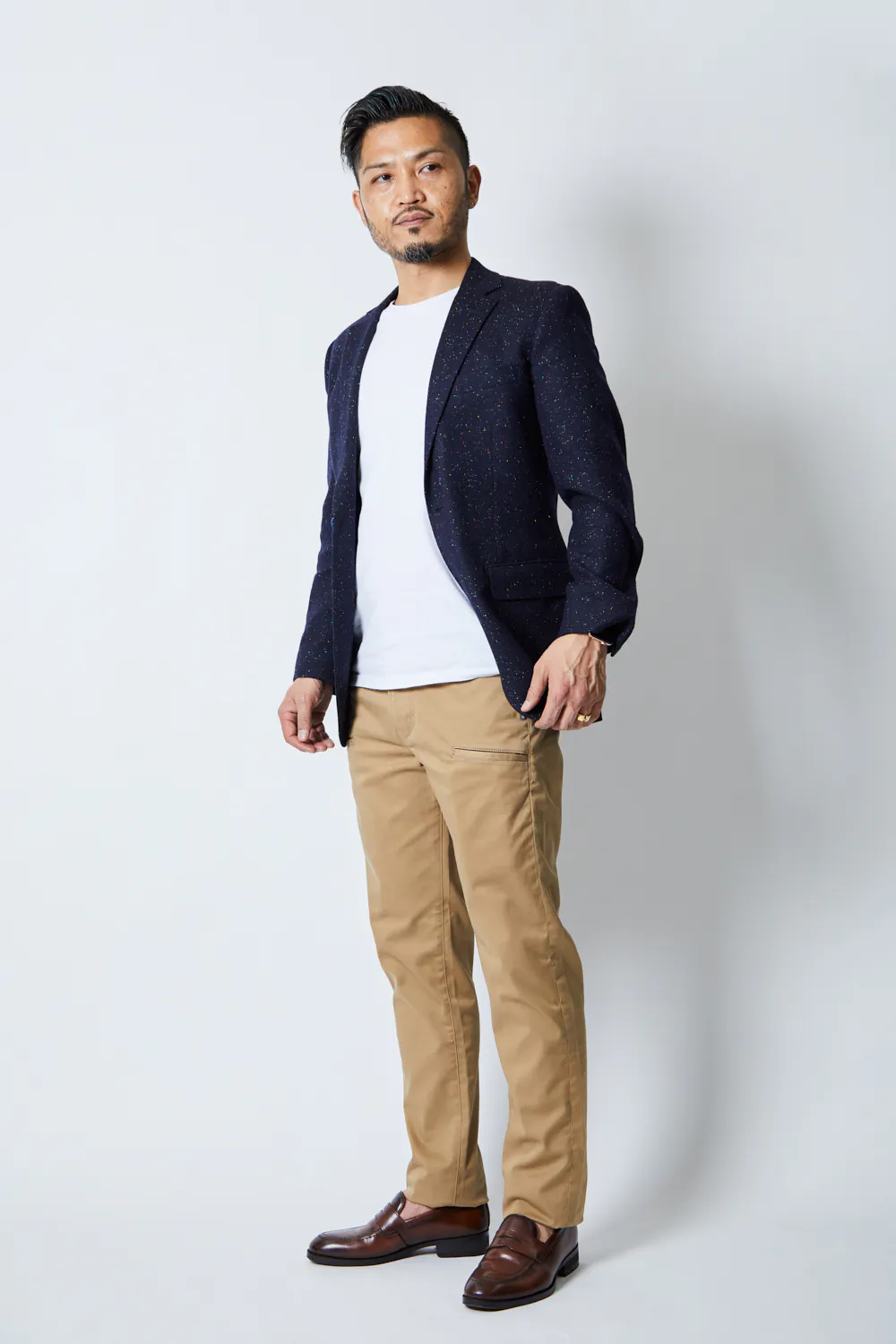 1本は、ダークベージュをジャストサイズでビジカジ用に。もう1本は、ブラックを1サイズオーバーでアンクル丈にしてタウンユース用に穿きこなしたいなぁって思います。つまり、2本買いです!