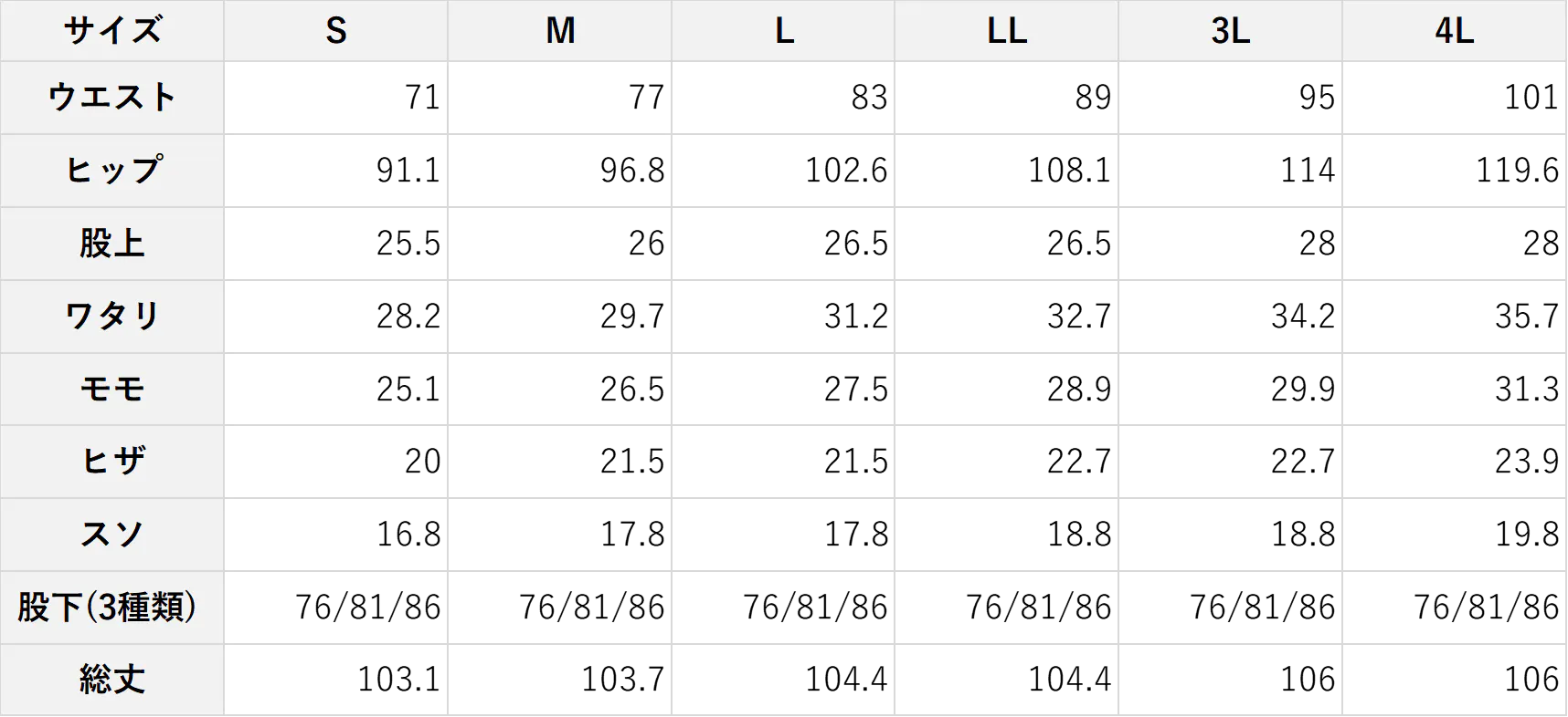 股下が、76cm・81cm・86cmの3つの中から選べるようになりました。