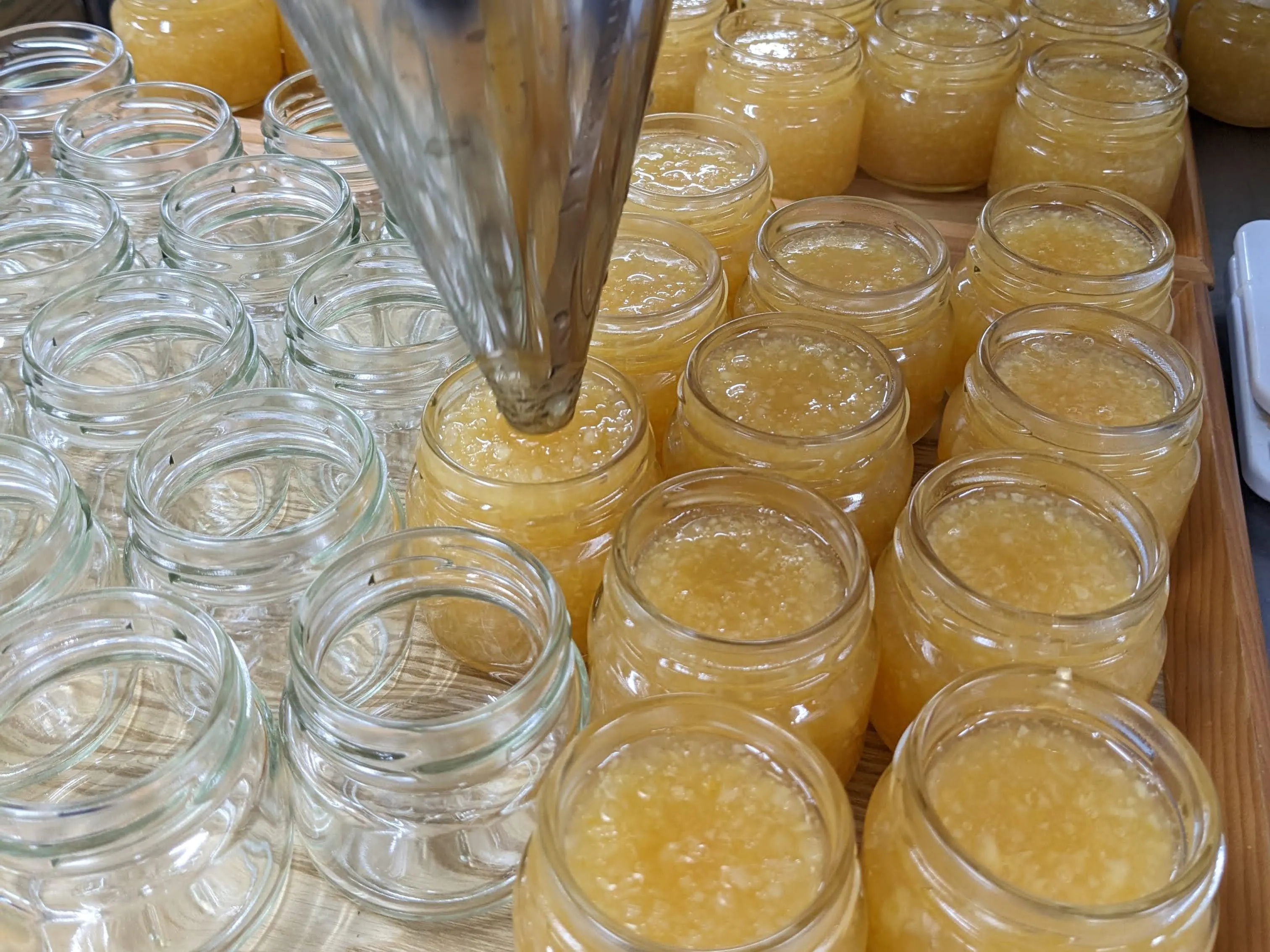 材料5kgで約7kg~8kgの柑橘ジャムができます。(種の割合次第で仕上がりが減ることがあります)