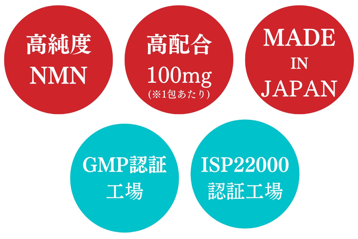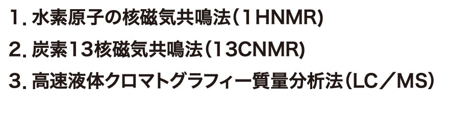 また、下記3つの試験方法でより厳しく解析されたものになり、加え遺伝毒性試験である「復帰突然変異試験(Ames試験)」もクリアしている最上級純度99.9%を実現したまさしく本物といえる最高レベルのNMN原料を使用しております。