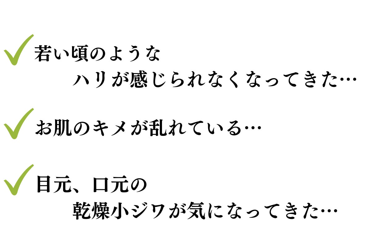 しかし一方で、ふと鏡を見たときに見えるうるおい不足を感じる肌、小ジワが目立つ目元、年齢を重ねることで変化する見た目の変化に漠然と不安があるのも事実。