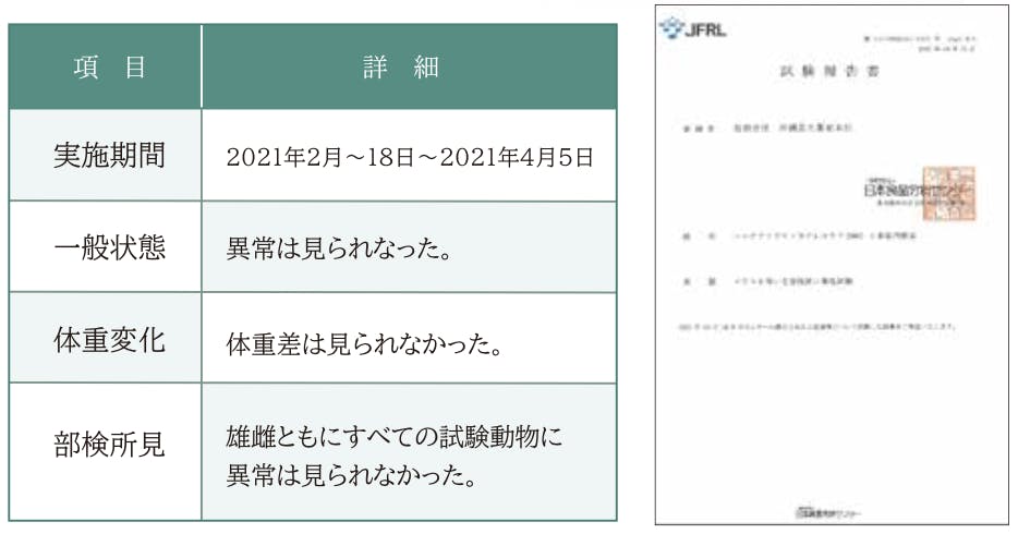 ▶︎ マウスを用いる急性経口毒性試験(限度試験)を行った。