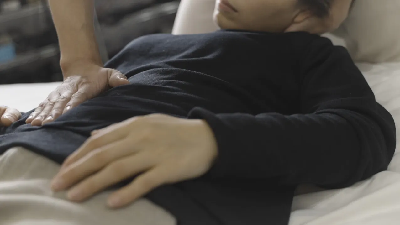 中学生の頃から二十歳過ぎまで生理不順が続いていた女性は、内臓の動きには異常がないことがわかり、探っていくと、小学生の時に父親を亡くした悲しみが心の傷になって身体にも影響し、子宮が偏っていました。