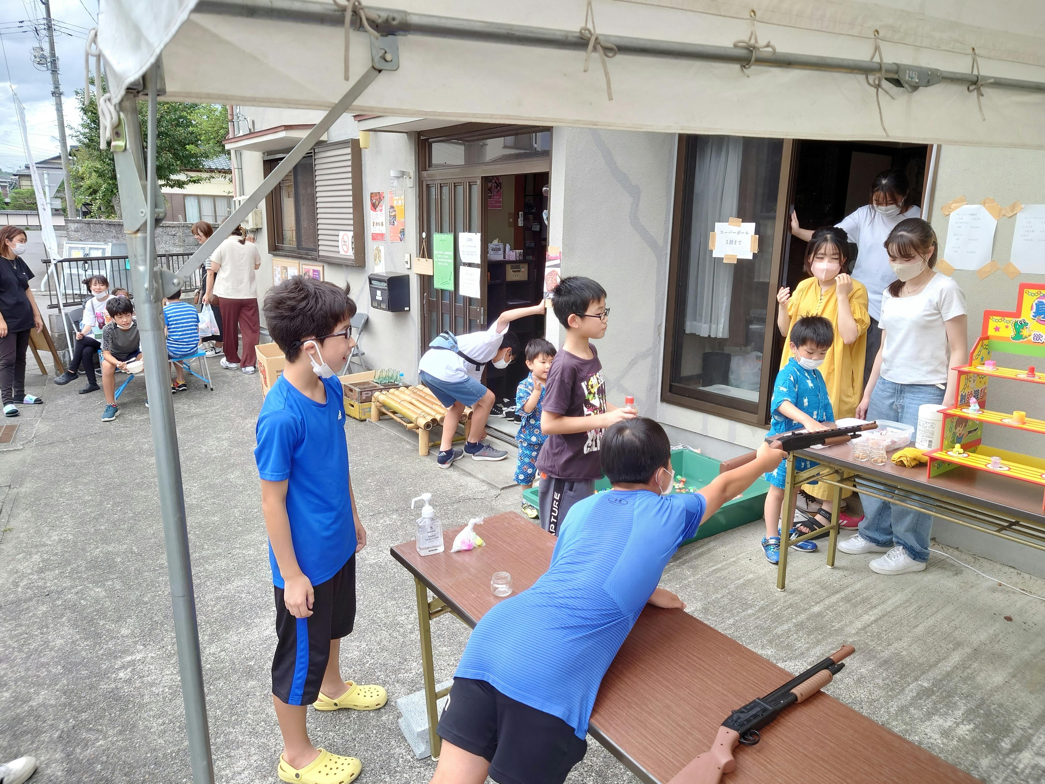 夏には「駄菓子屋めりめろ祭り」を開催。敷地を利用して輪投げやボールすくい、射的等のゲームコーナーを作り、多くの方にご来店いただきました。またこの日は地元大学生のボランティアや地元の方々からご協力を頂いたりと地域が一体となったイベントを開催することができました。