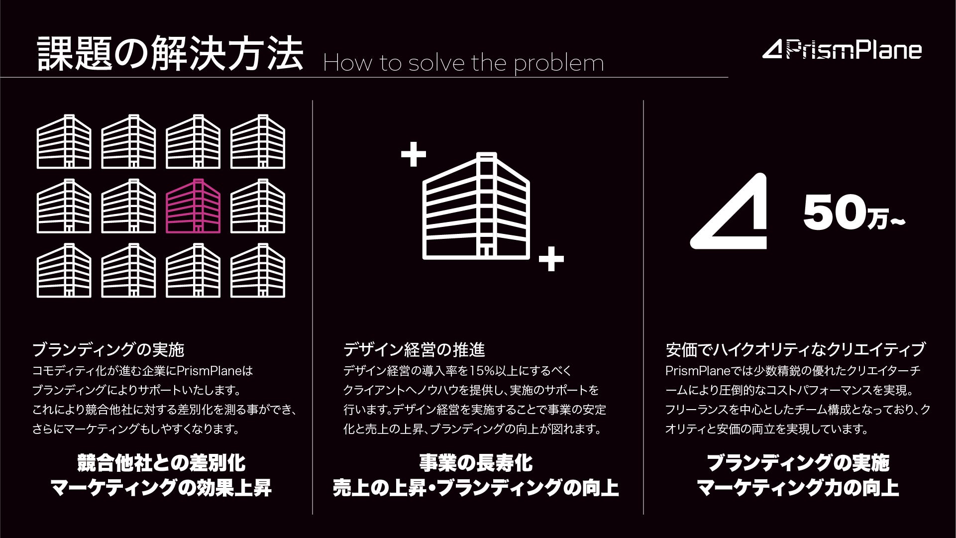 PrismPlaneは、デザイン経営を導入することで事業の安定化、売上の上昇、ブランディングの向上を実現します。クライアントには、デザイン経営のノウハウを提供し、実践的なサポートも行います。