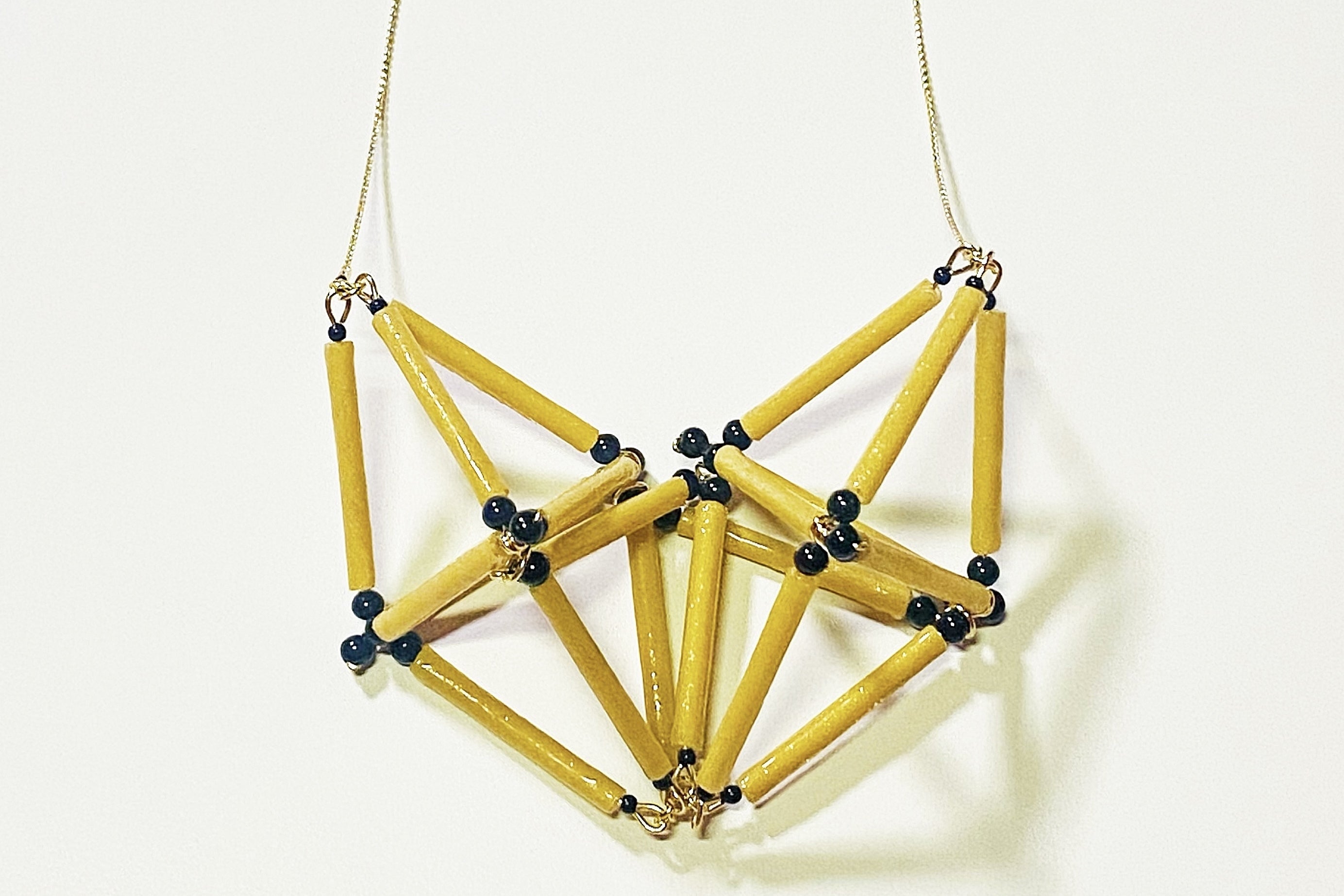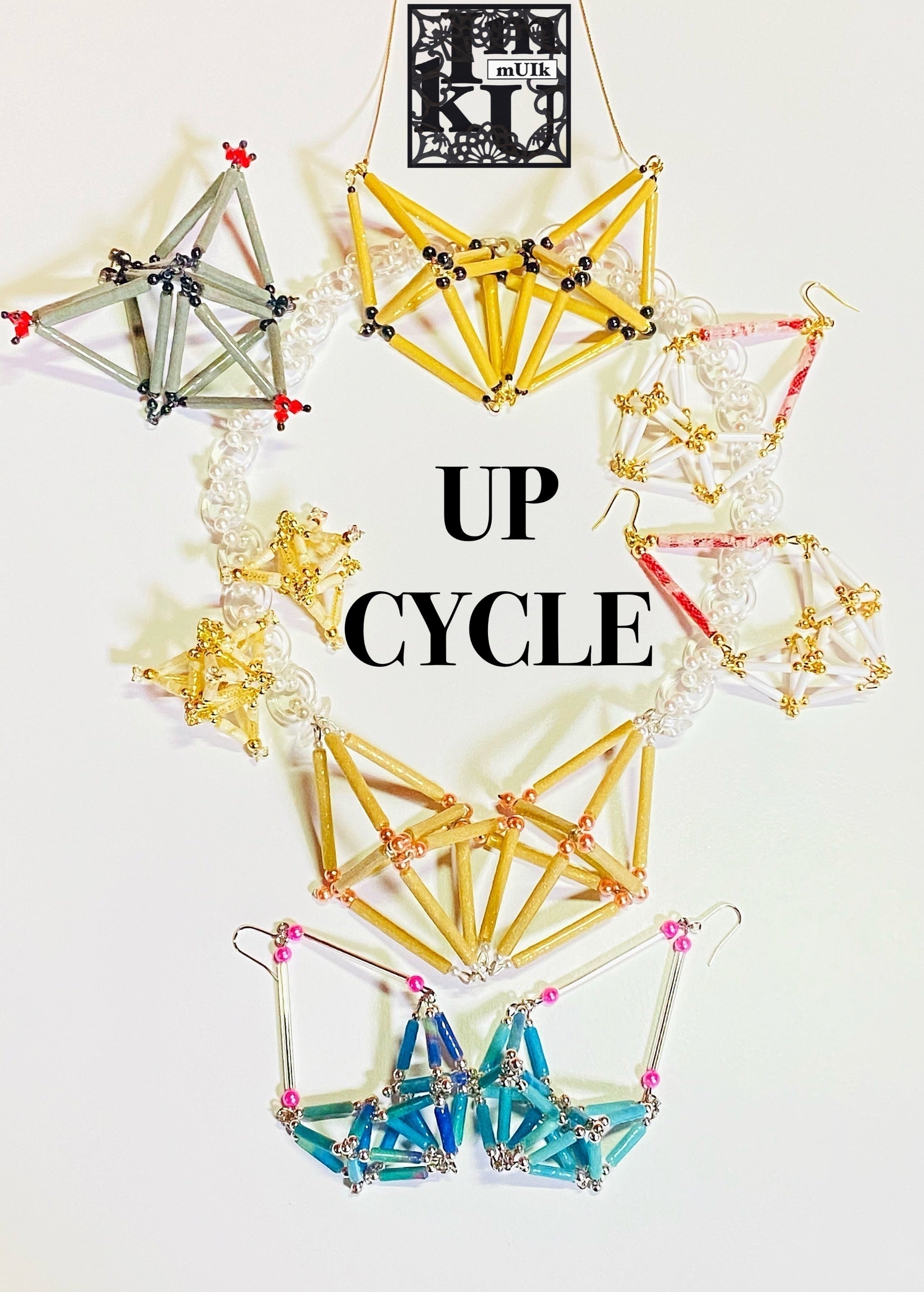 はじめまして。アーティストとの未来(MIKU)と申します。BRAND【mUIk】を通して身に付けるアート作品を製作しています。mUIkの代表作品、立体的な3Dアクセサリー。この3Dデザインでアップサイクルな商品を展開しています。