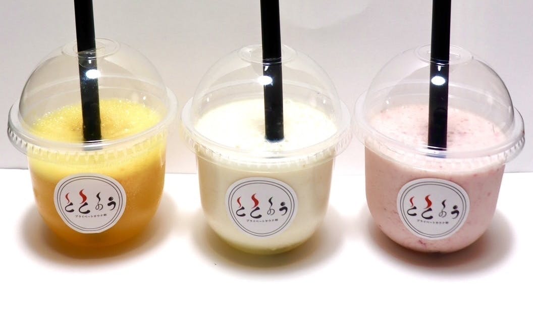 左からみかんスムージー、パインスムージー、イチゴスムージーになります。