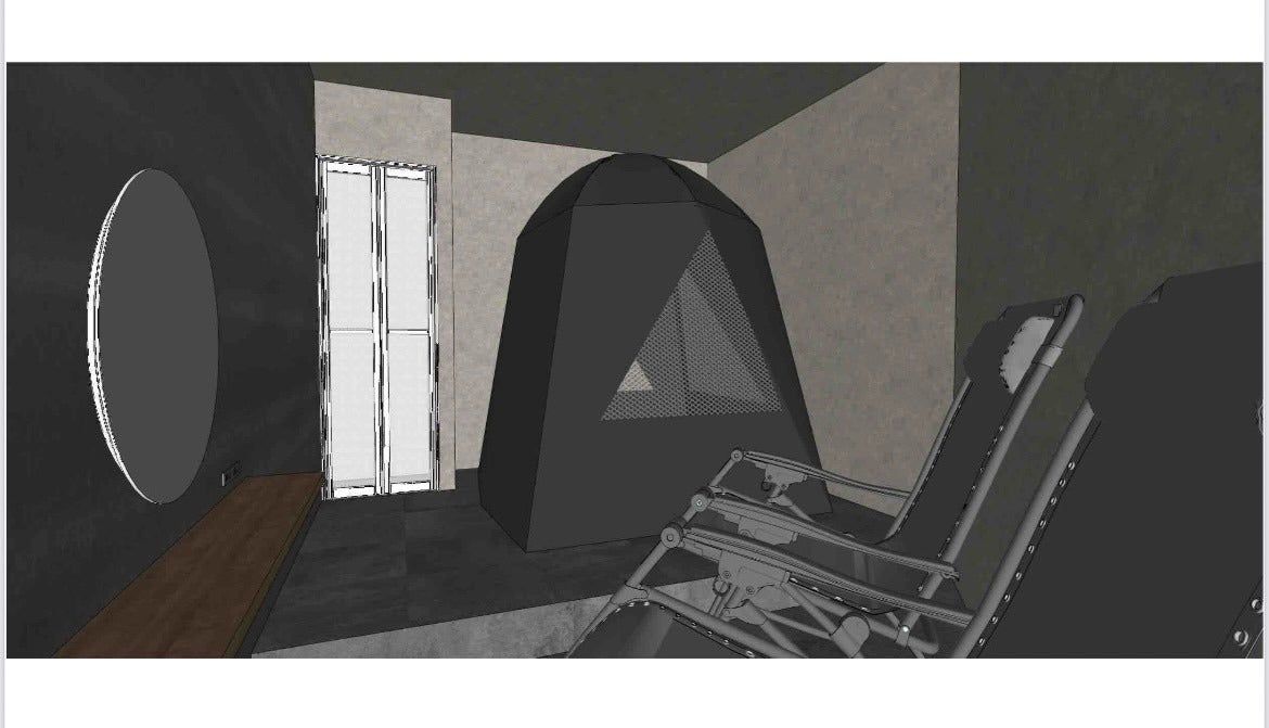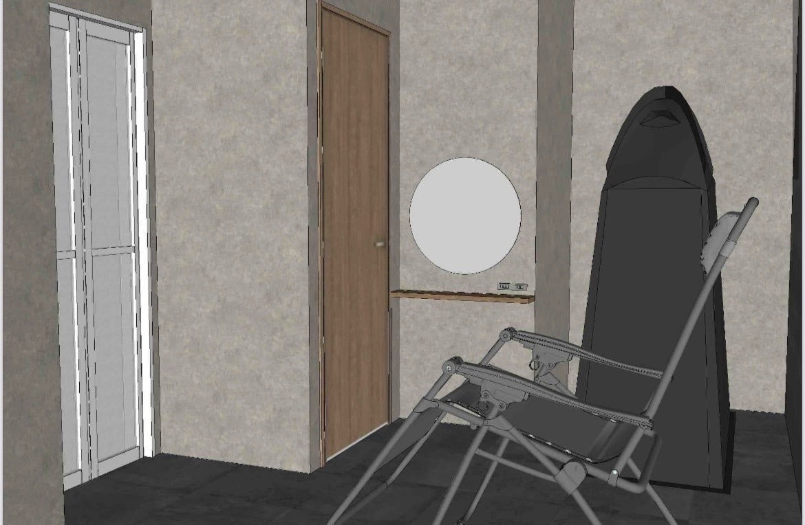 内気欲でインフィニティチェアー、室内にてBluetoothでお好きな音楽を聴いて頂き、扇風機の設置、お客様だけの特別空間で"ととのう"を味わい下さい。