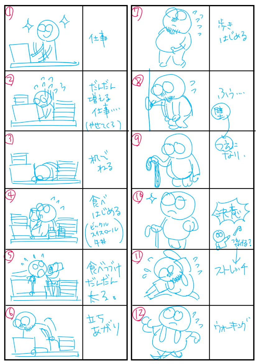 こんなパラパラまんがもそのひとつですが(「ひとつ」と書いたのは、まだあるから、ですが)私のことを昔からよく知る、とある女性イラストレーターの描きおろしです(久しぶりに会ったとき、私の姿を見て仰天した人物です)。