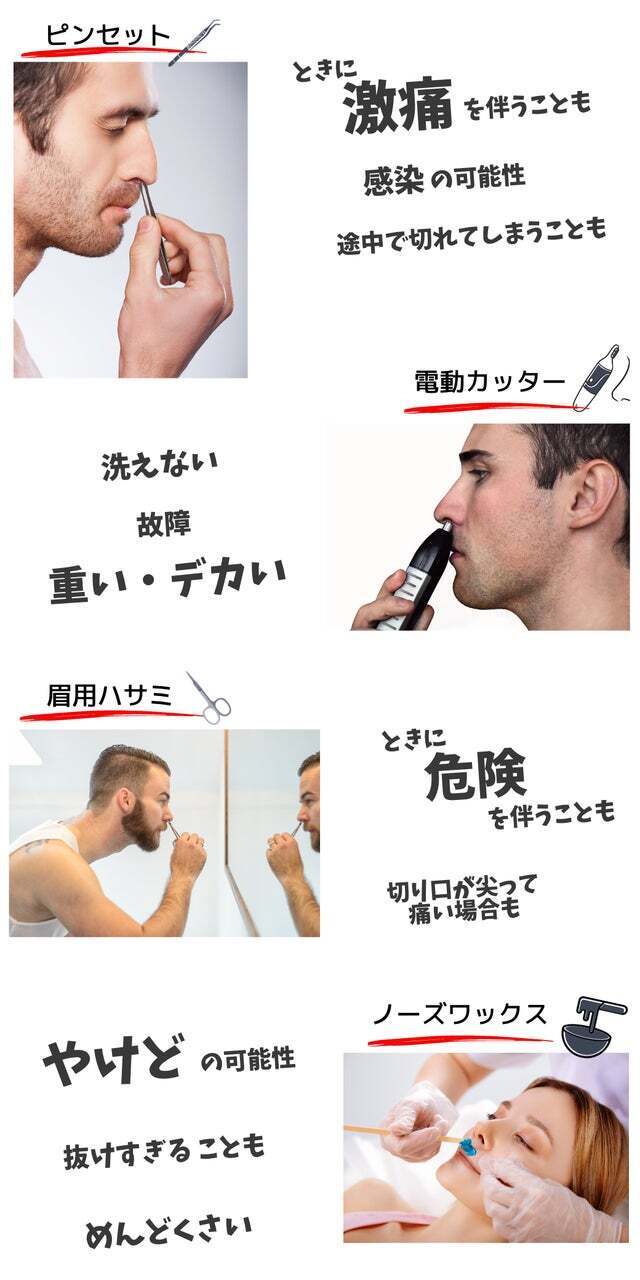 普段どのように鼻毛を処理していますか?ハサミで切ったり、ピンセットで抜いたりすると、鼻の中の皮膚を傷つけてしまうことも・・・。電動カッターを使うと、鼻毛が挟まったり、引っ張られたりして痛いこともありますよね。
