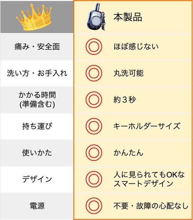 バッテリー式ではありませんので、充電しておく必要はなし。底部を数回押せば、数秒で処理が完了します。