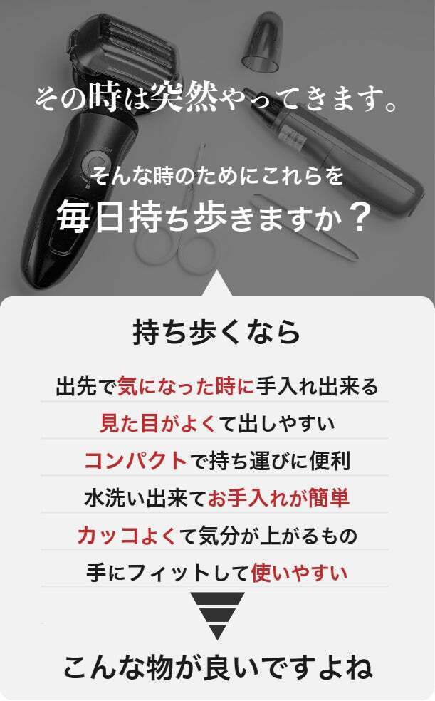 そんな時も“鼻毛カッター HNG-2"をポケットに入れておけば安心です。
