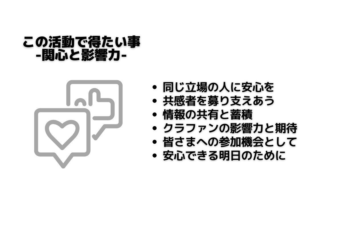 支援いただき活動が開始できれば、皆さまも本プロジェクトを通じて社会貢献活動に参加できると考えております。支援して終わりではなく、参加機会として活動成長を見守りいただければ幸いです。多くの人に知ってもらい関心を持ってもらうこともクラファンの魅力だと考えます。