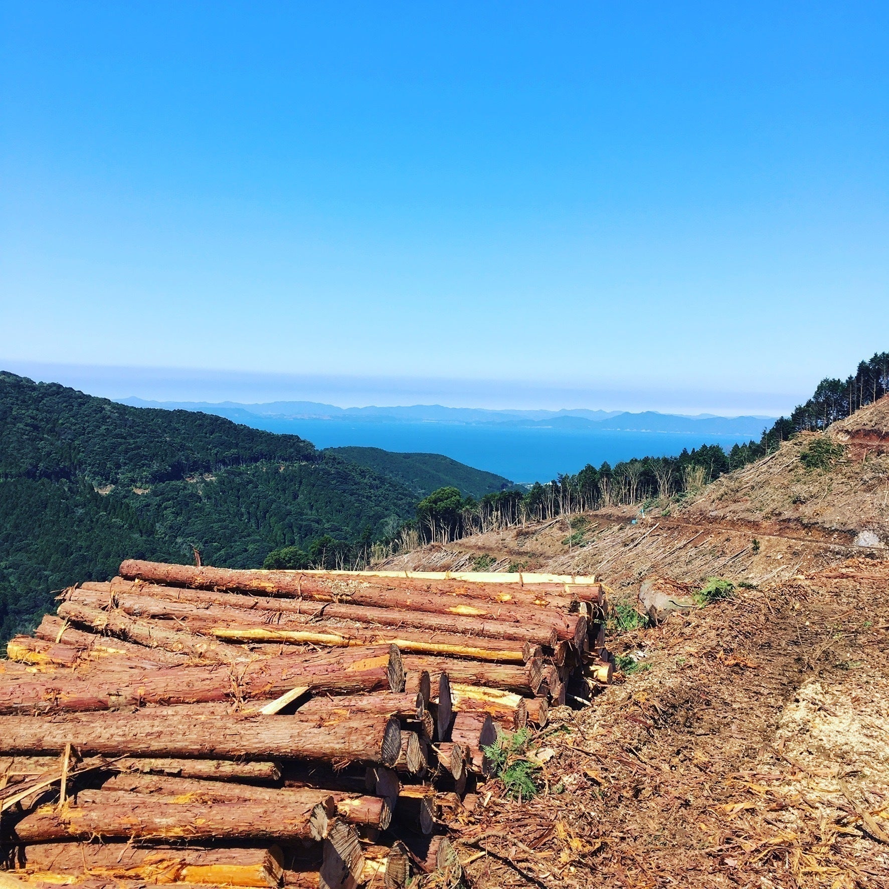 森林伐採、環境破壊、と言う言葉もありイメージが悪かったりもしますが、木は樹齢(木の年齢)が経つにつれ光合成で吸う二酸化炭素も減っていき新たに生み出す酸素量も減っていきます。そこで私たち林業従事者は、伐期樹齢スギで35 〜 50年、ヒノキで45 〜 60年、で伐採を行い伐採後は育林(苗の植え付け、下刈り、枝打ち)を行います。これを何世代にも継続的に行い古い山〜新しい山へ山のリサイクルを行います。