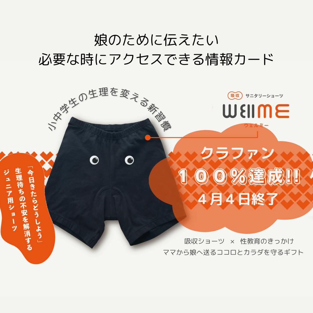 みなさま、この度はfollg.の小中学生向け吸収サニタリーショーツ「wellme」のクラウドファンディングへ、たくさんのご支援をいただき、100%の目標を達成することができました。この場を借りて、心からお礼申し上げます。