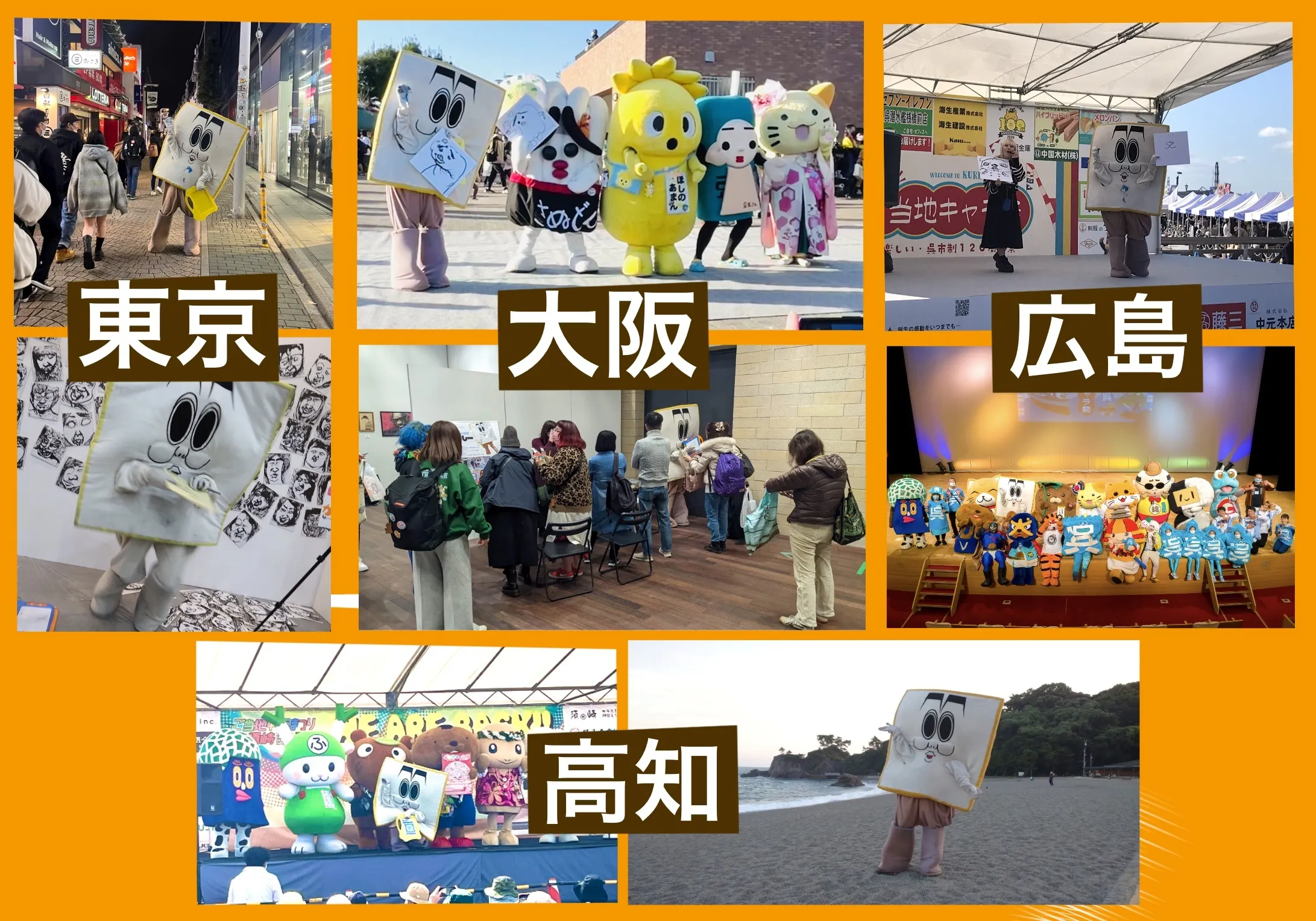 しきっしーは福岡県を中心に得意の似顔絵と特異なキャラクター性を生かして