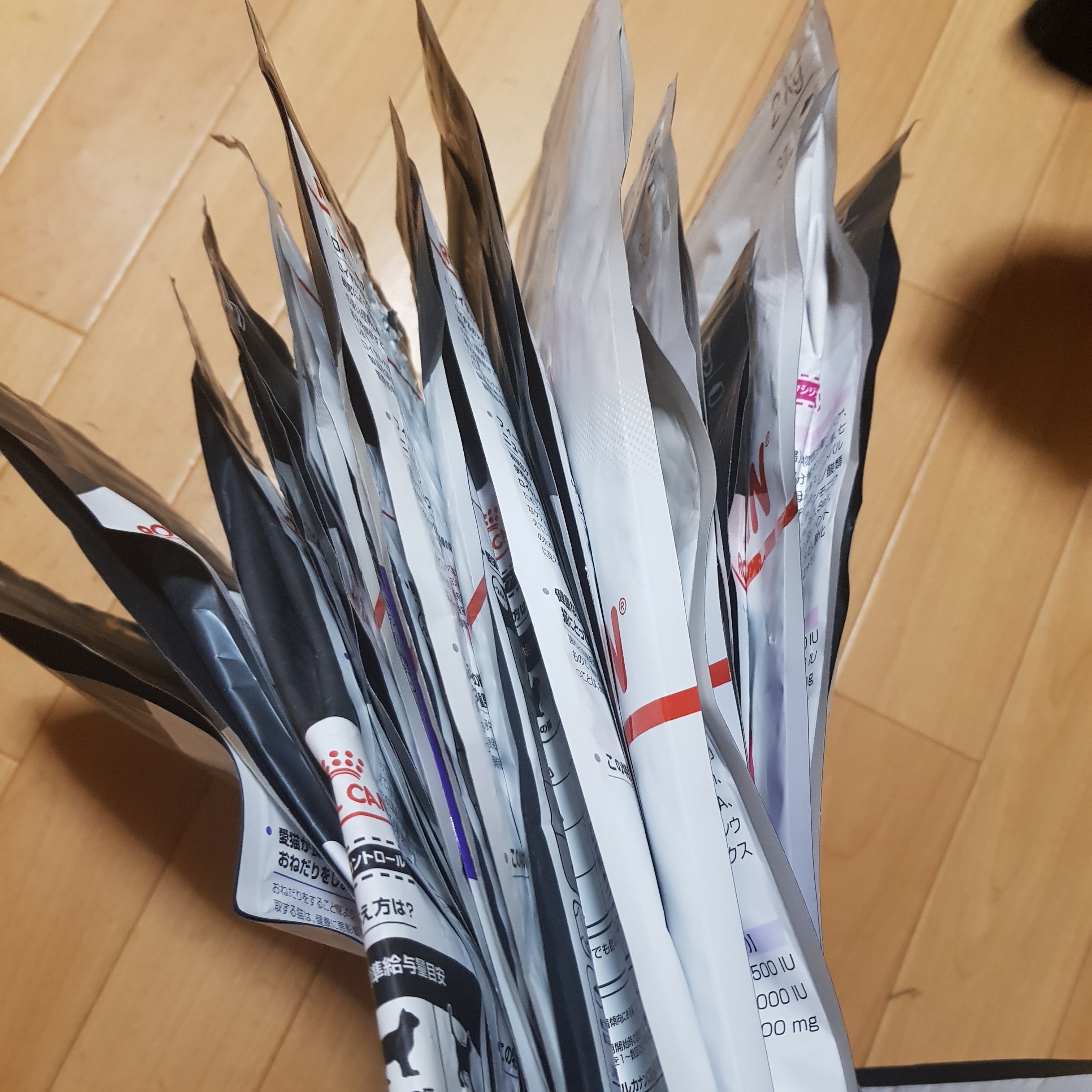 ロイヤルカナンの袋は捨てずに置いてあります。