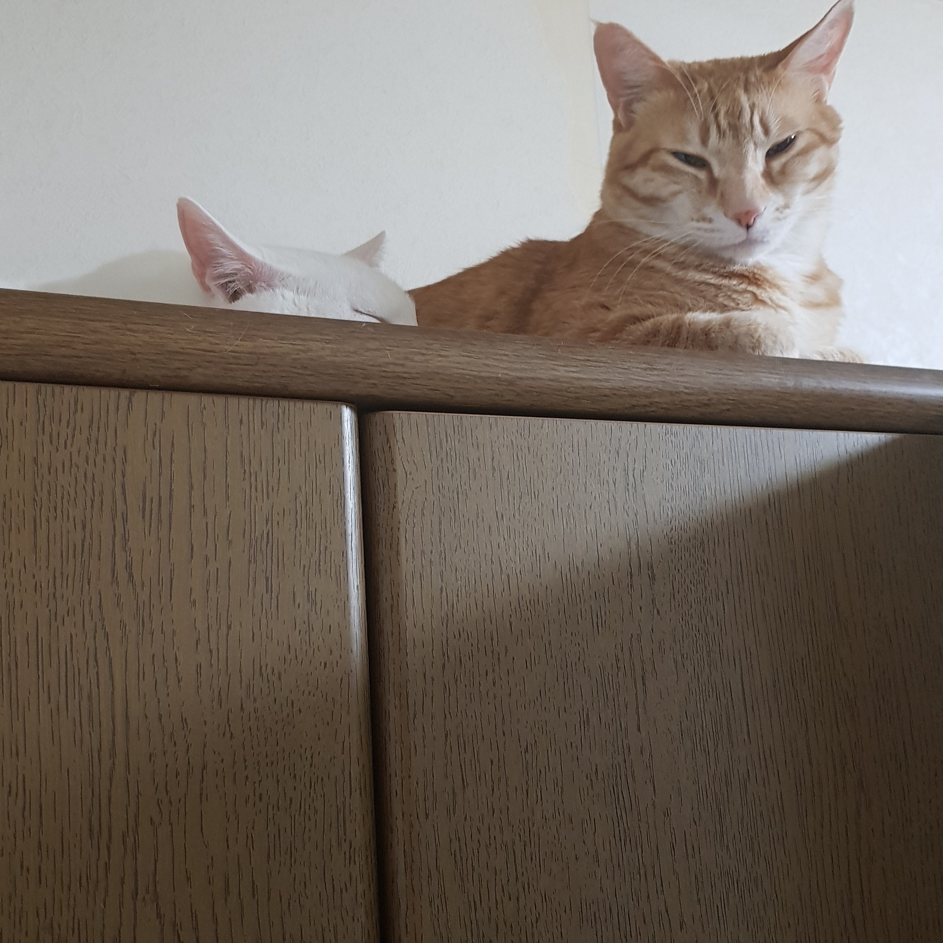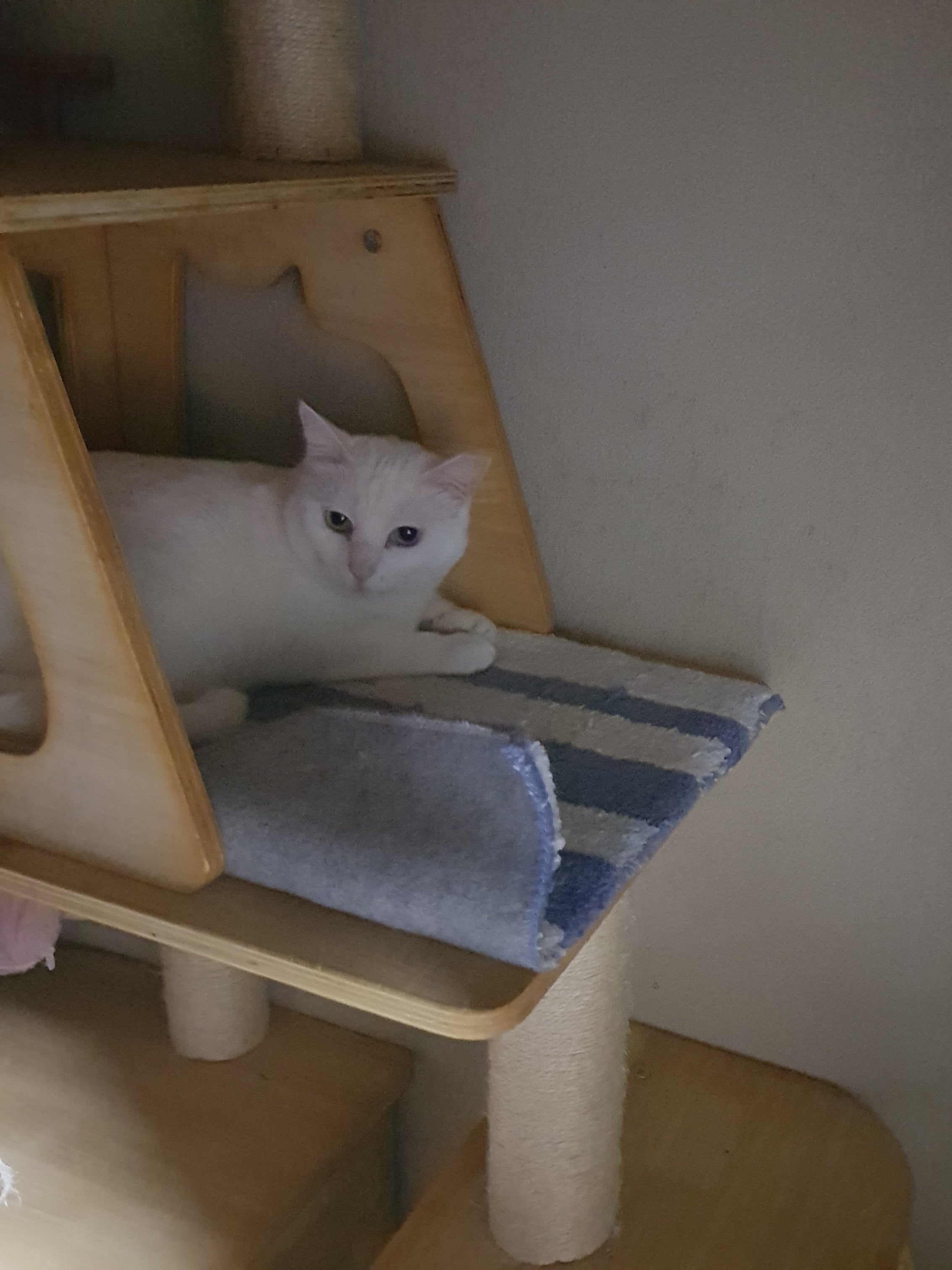 ケージから出て馴れていってほしいですが、高い場所や、こういった人が入れないような逃げられる場所にどうしても行ってしまいます。