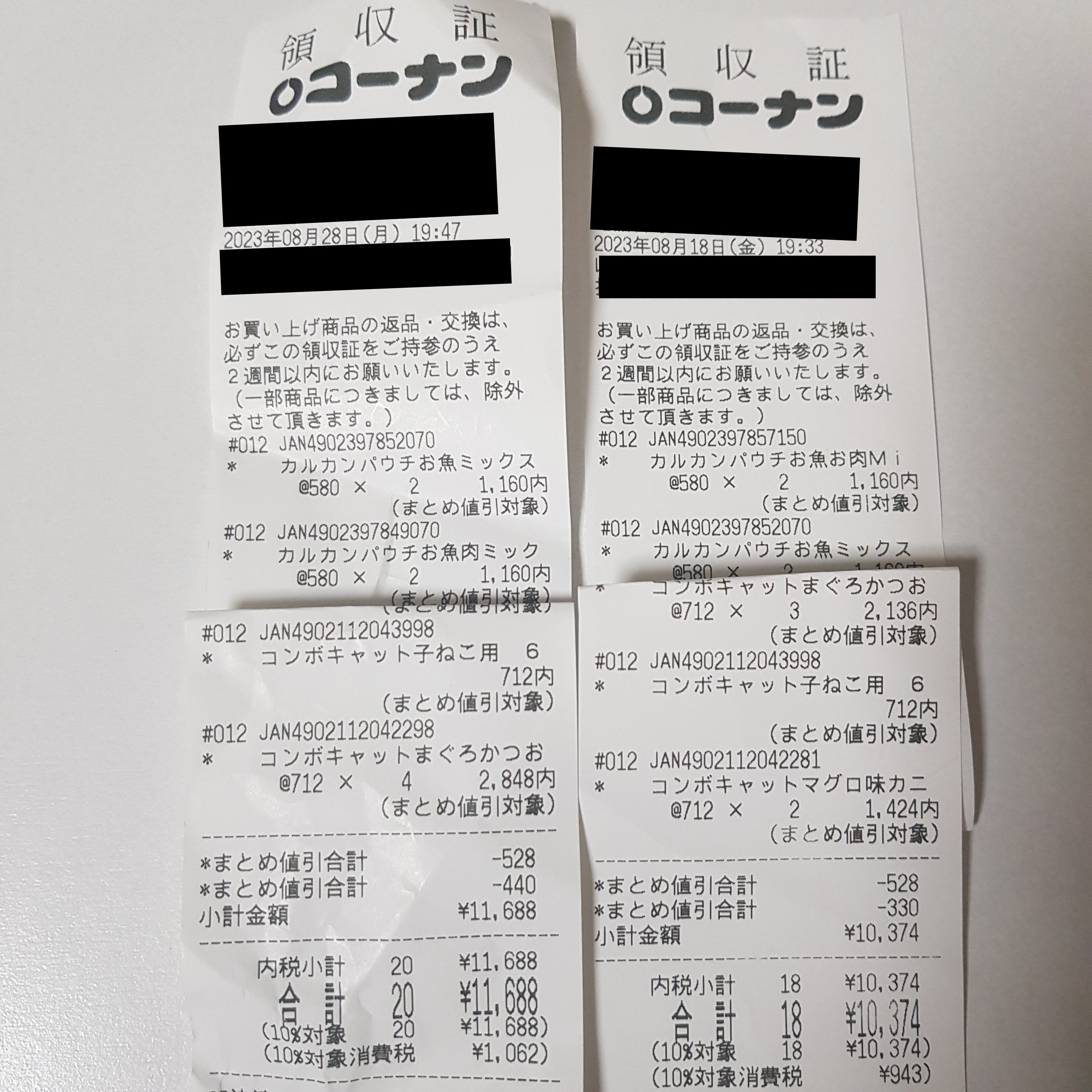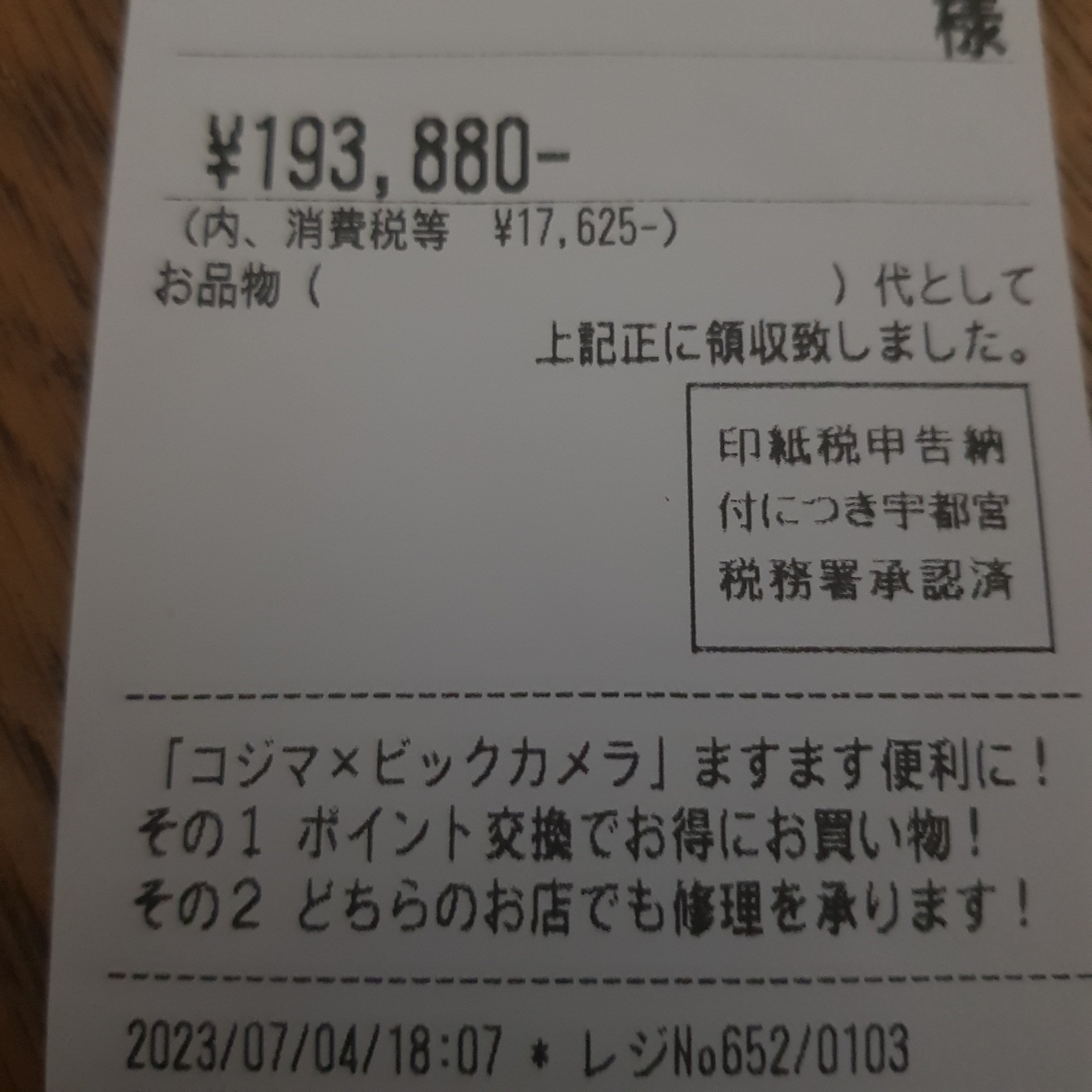 レシート、後でまた載せます。