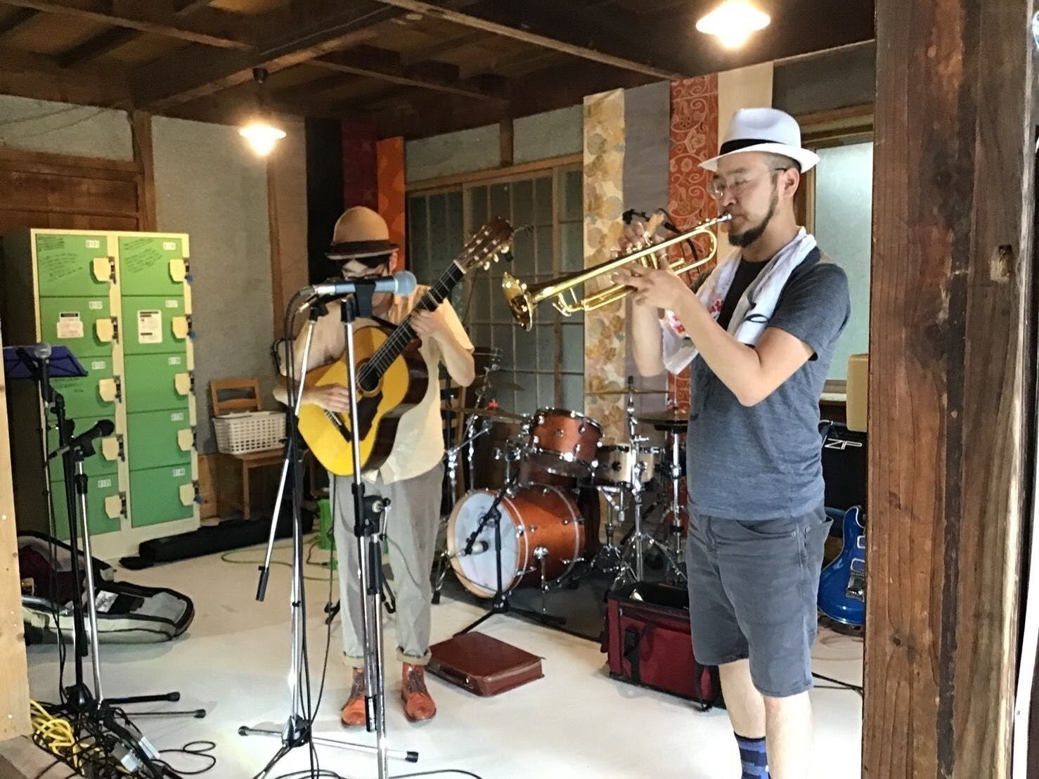 古民家ゲストハウスでは各種ワークショップやジャズコンサートなども行っており、カフェでは近隣の墨象家や藍染作家、画家などアーティストの方々の発表の場として活用いただいております。