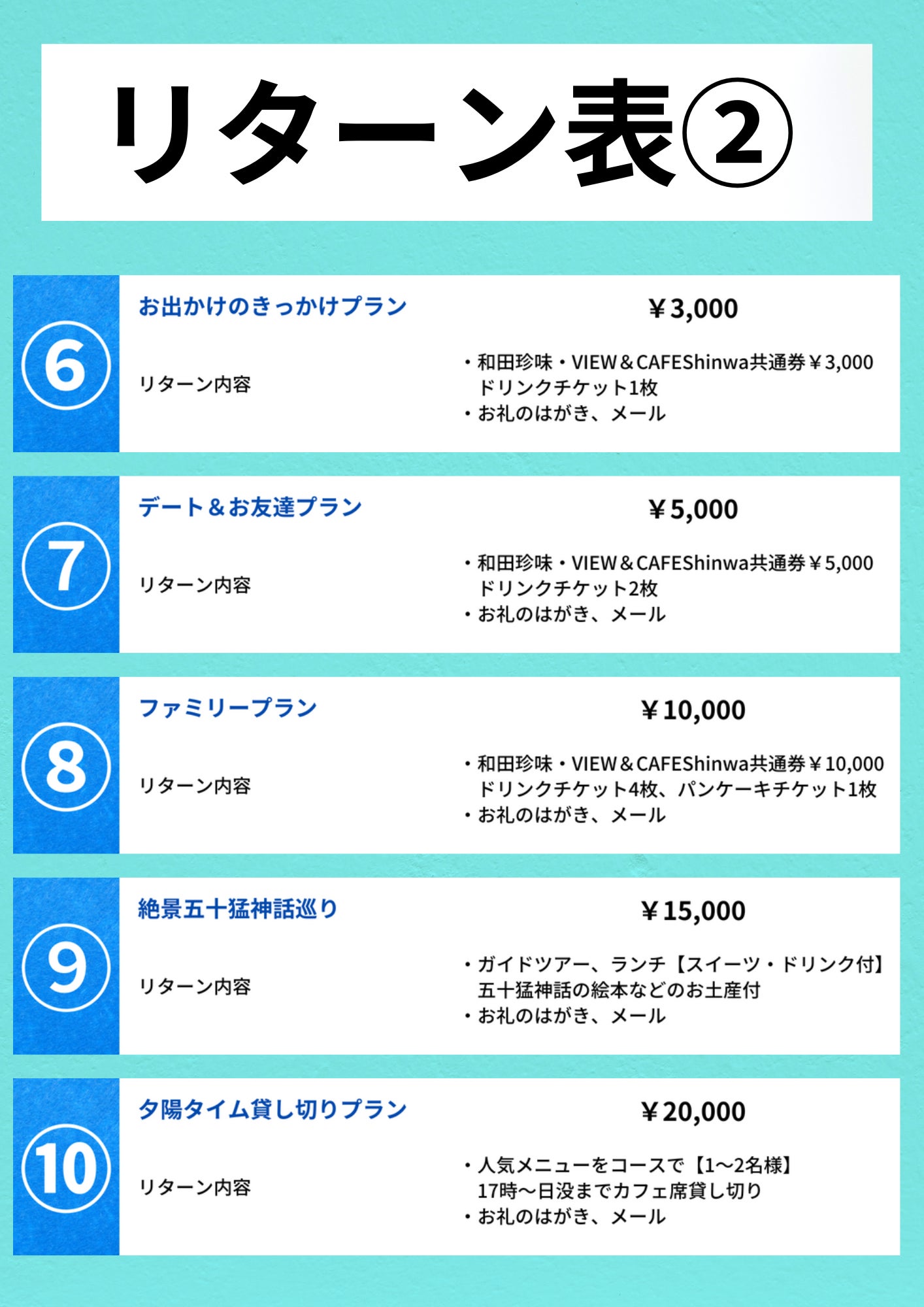 VIEW&CAFE Shinwa カフェ室内席増設、SHINWAテラス新設費用に全額使用します。
