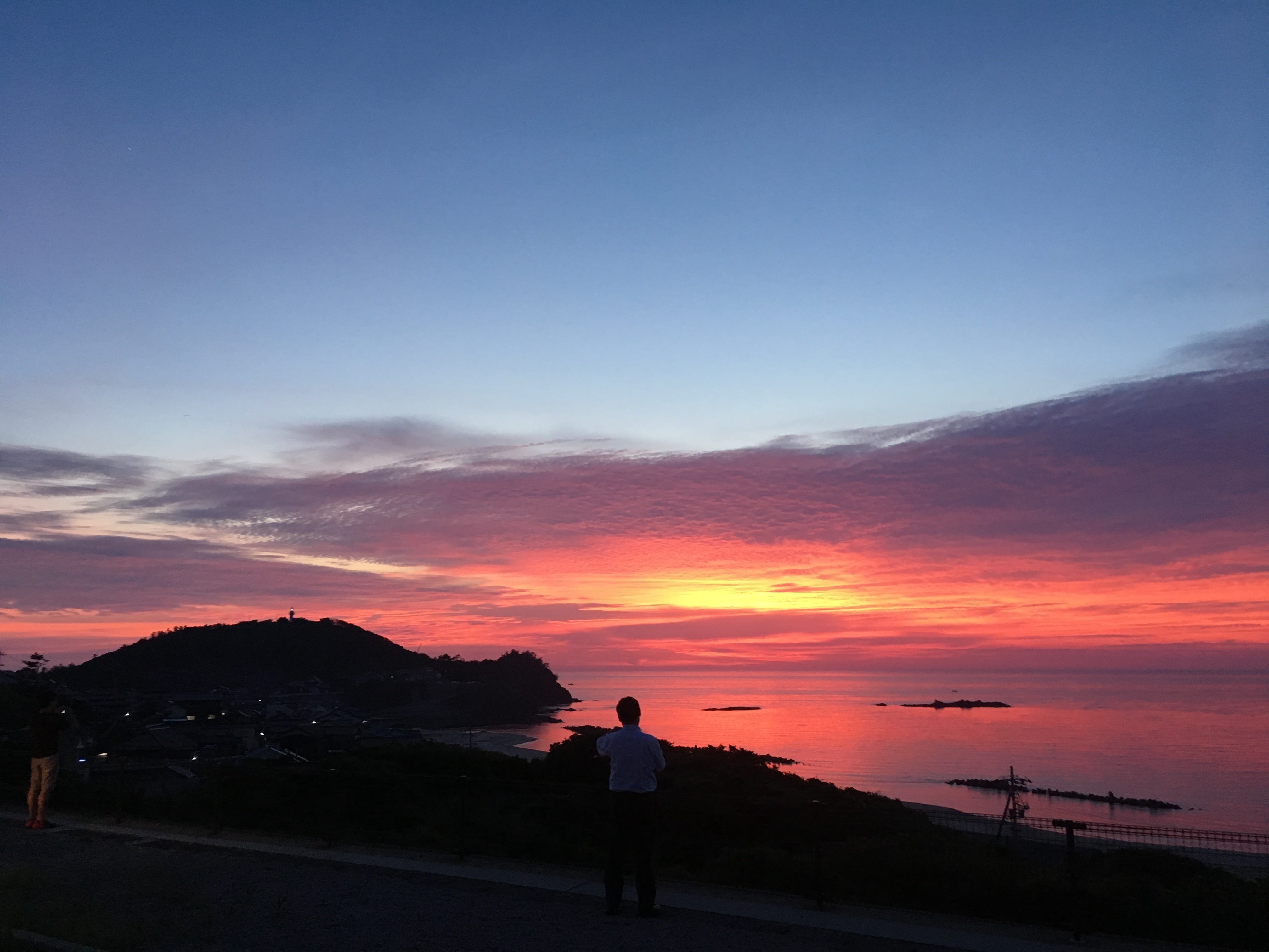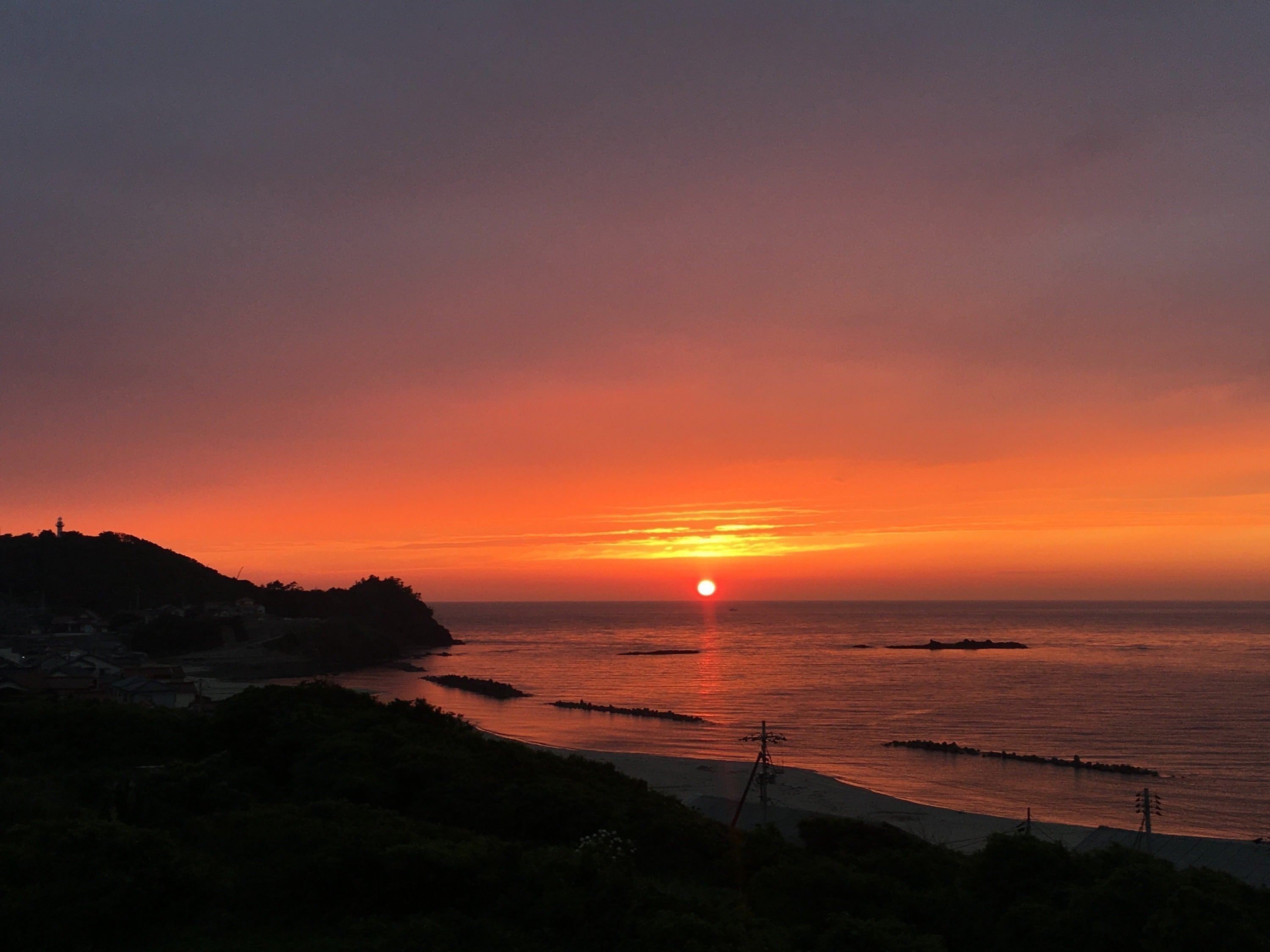 2021年の5月から夕陽タイムを開始!5月から8月は夕陽が日本海に向けて落ちていく様子を見ることができます。