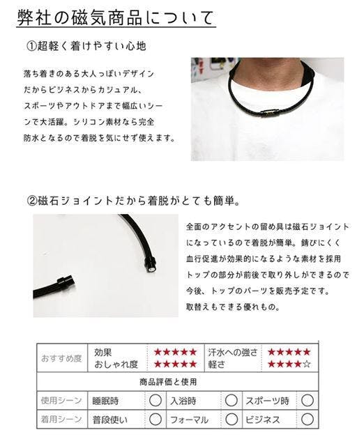 弊社の製品も他社と同じ磁気治療器ですが、他社との違いはなんといっても磁力の違い。アスリートでも使っていただけるようなネオジウム磁力を使用した磁気ネックレスです。