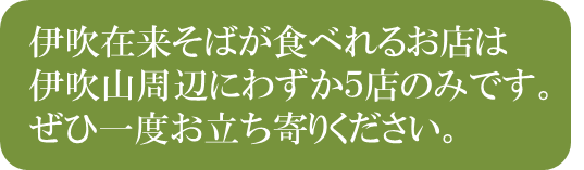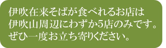 私たちは、在来種にこだわったそばを作り続けることを誇りにしており、この素晴らしい「伊吹在来そば」の伝統と味を全国へ広め、そして後世へと継いでいきます。
