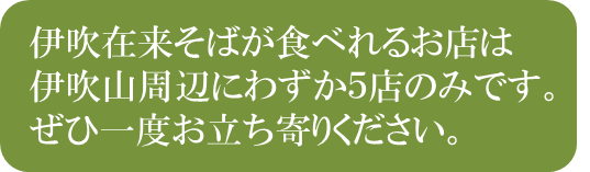 私たちは、在来種にこだわったそばを作り続けることを誇りにしており、この素晴らしい「伊吹在来そば」の伝統と味を全国へ広め、そして後世へと継いでいきます。