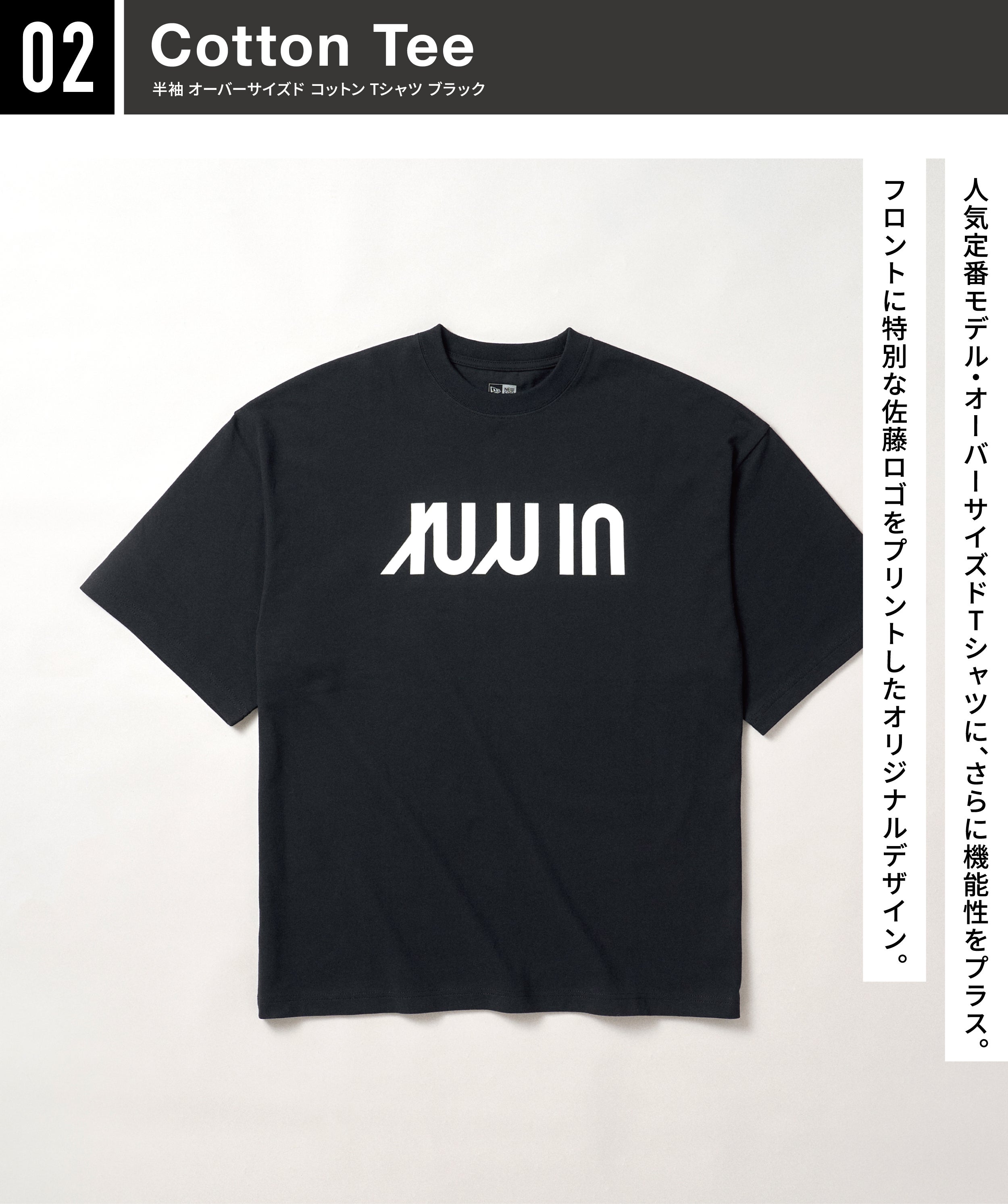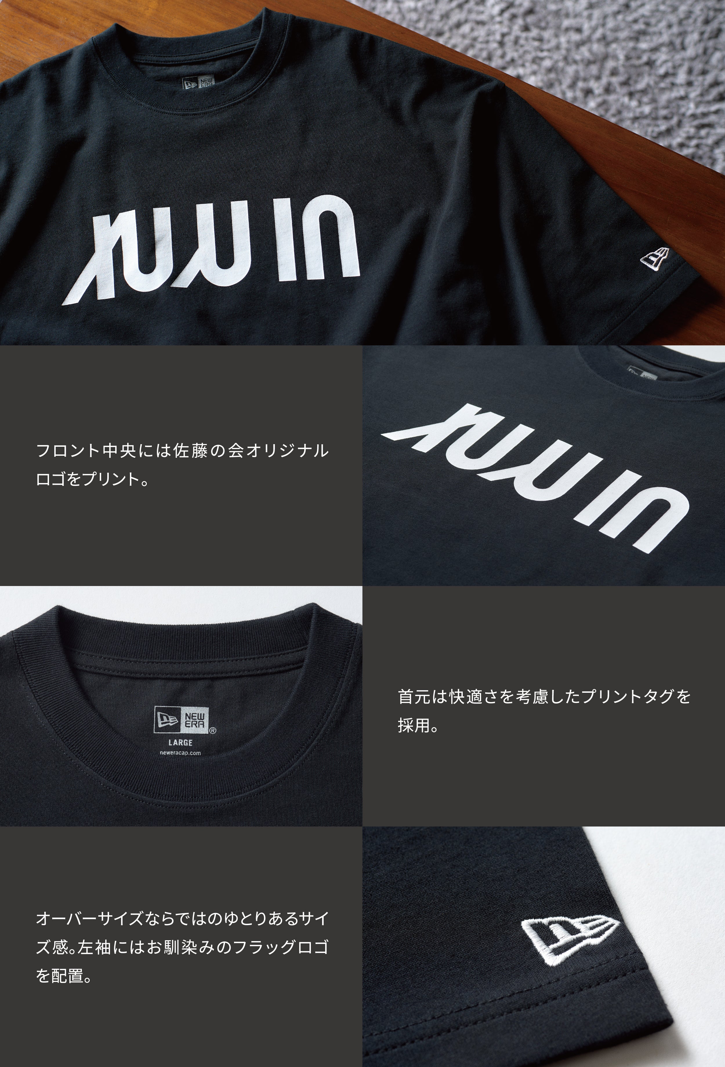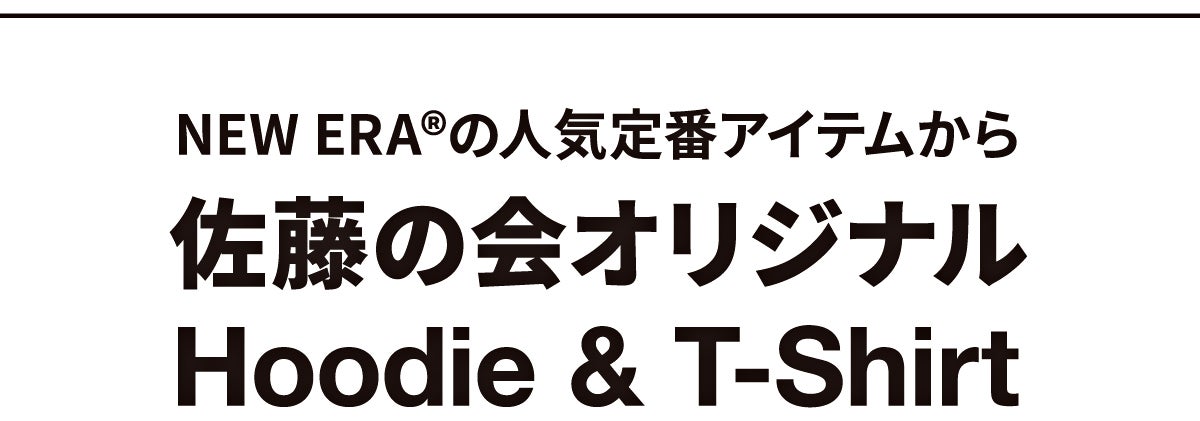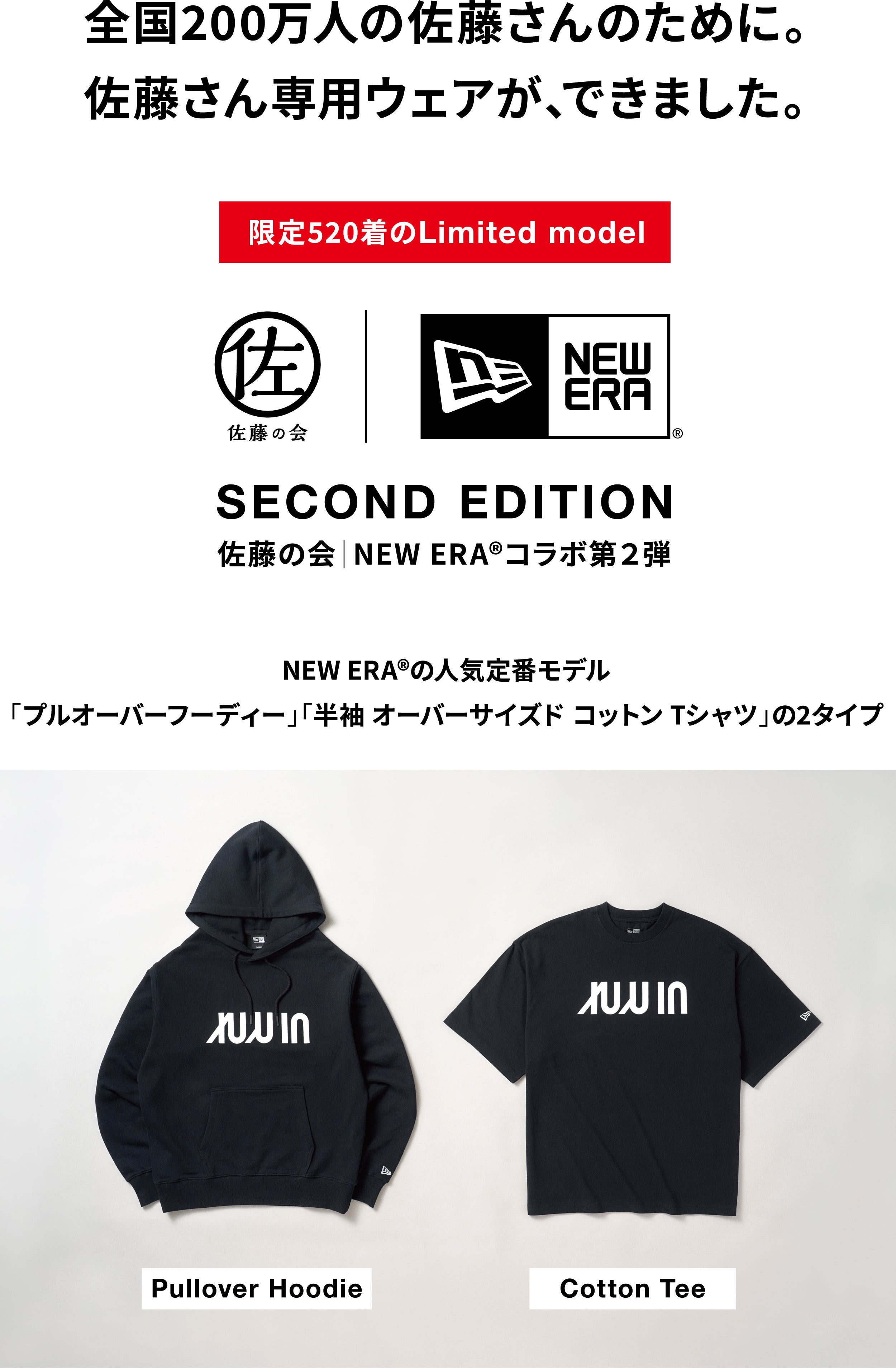 佐藤の会とNEW ERA®︎によるコラボレーション第2弾は、NEW ERA®︎を代表する人気定番モデル「プルオーバーフーディー」、「半袖 オーバーサイズド コットン Tシャツ」の2タイプをリリース。フロントに佐藤の会オリジナルロゴをプリントし、年齢性別、シーズンを問わず着まわせる、佐藤さんマストアイテムの誕生です。