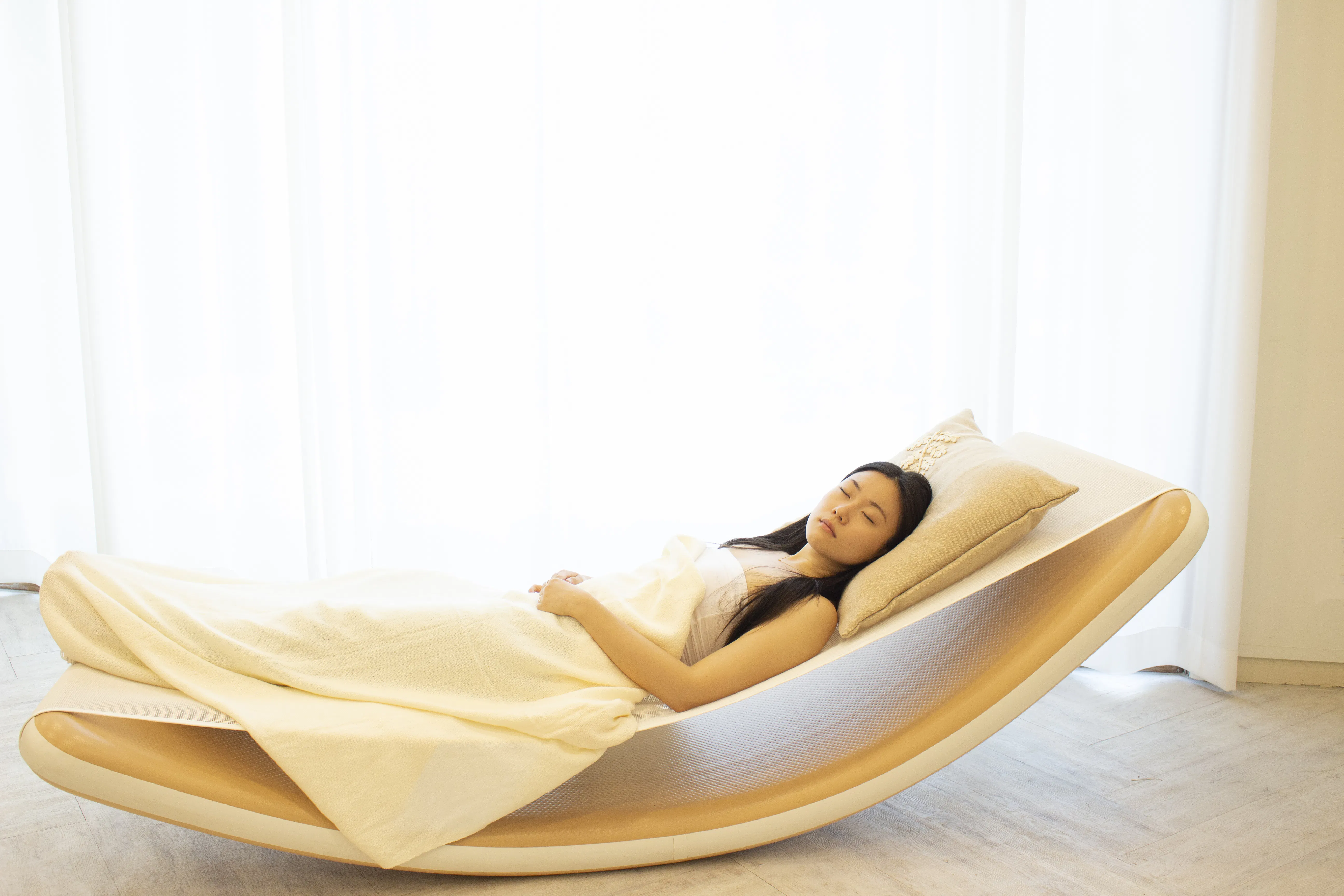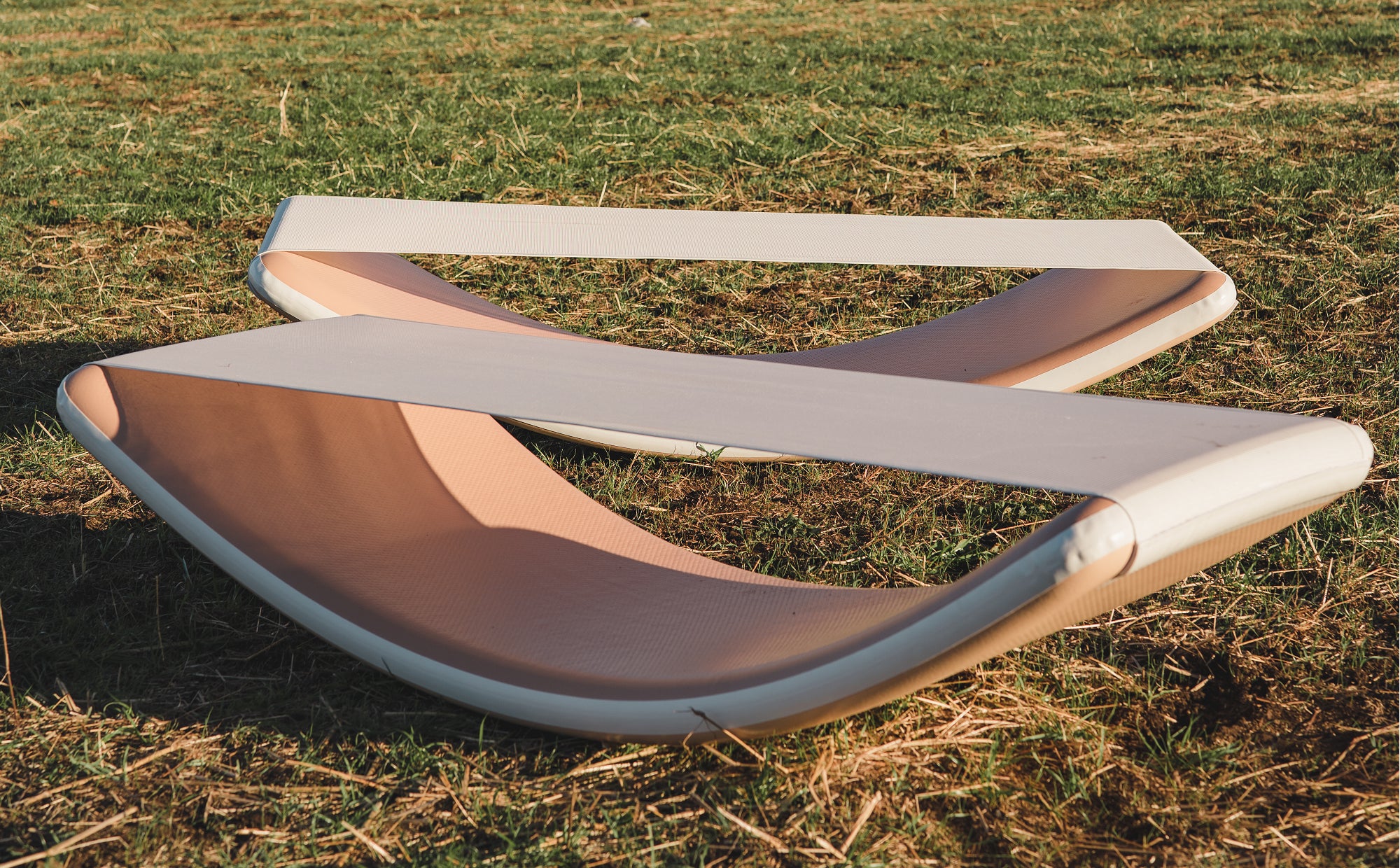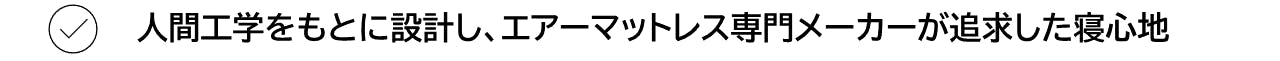 エアーマットレスで難しいのは、形を留めることのできない空気をいかにエアマットの中に均等に閉じ込め、寝心地の良さを作り出すかということ。体を横にしたときにかかる腰などへの負荷に対する十分な支力を与えられる設計について研究を進めた結果、空気を圧入するだけで体に負担を与えないという機能が備わっていない一般的なエアーマットレスやハンモックとは違い、二重壁構造(Double Wall Fabric)により一定の厚みと伸縮性をかなえたエアーマットレスの開発に成功しました。
