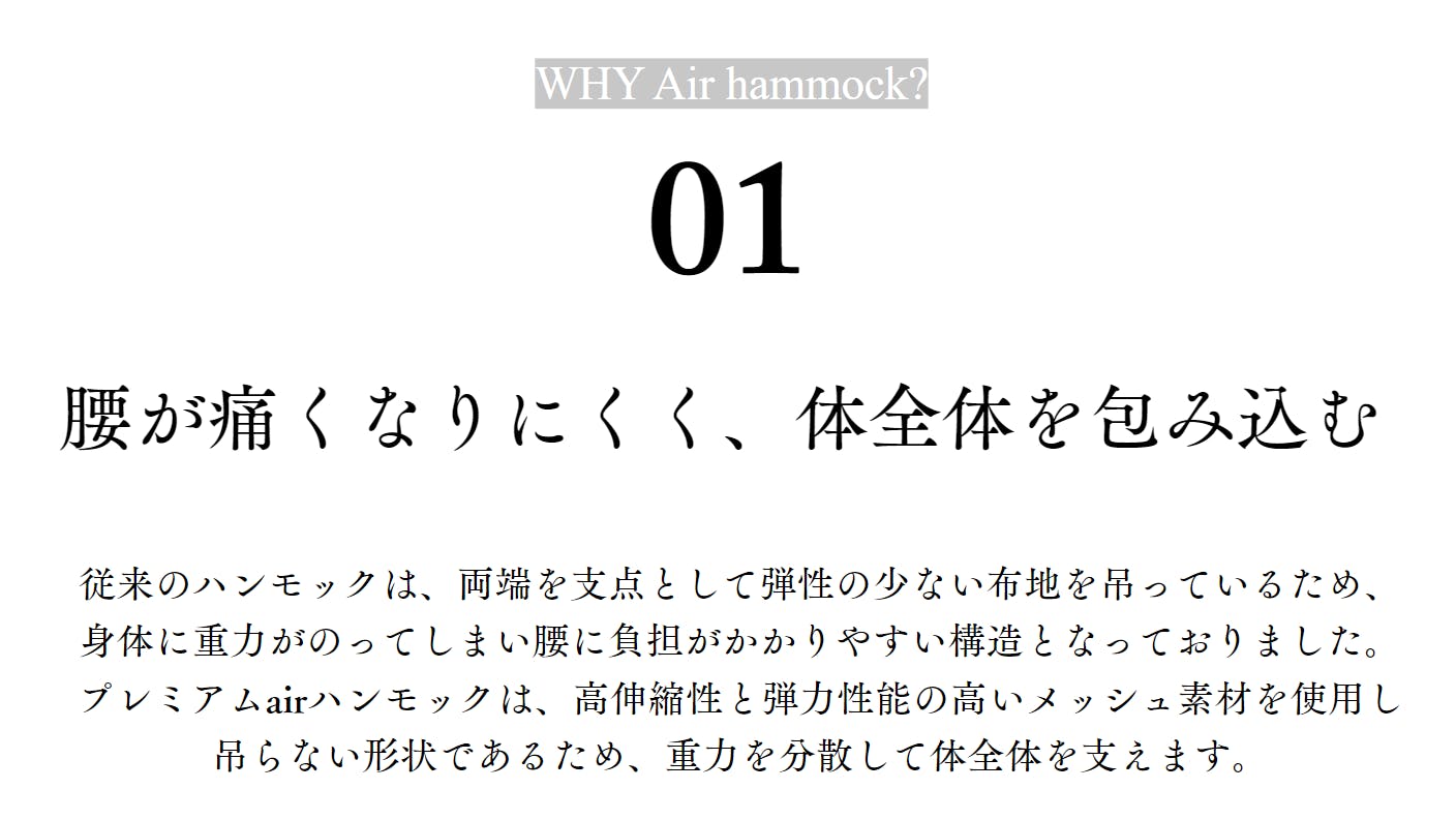 「Premium Air Hammock(プレミアム エアー ハンモック)」(以下、エアーハンモック)は