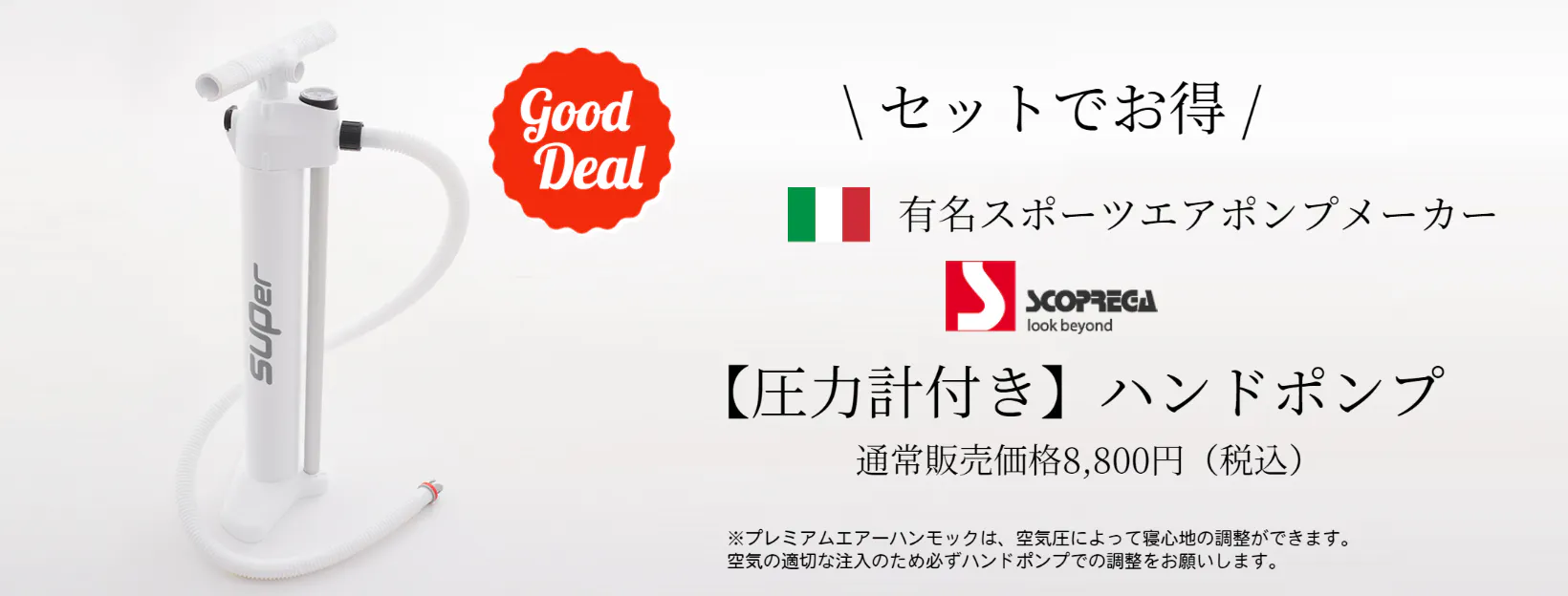 通常価格8,800円相当圧力計付きハンドポンプをお得に提供